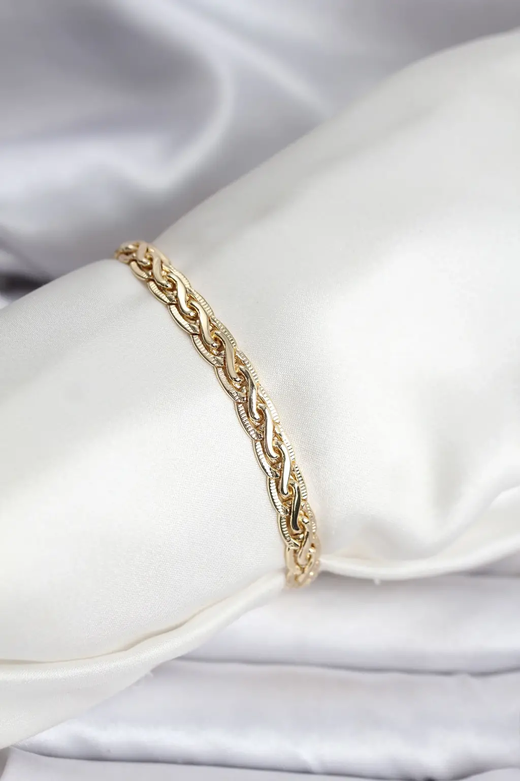 14K Gold Renk Kaplama Lazer Zincir Model CM Kadın Bileklik Zarif detaylarla, göz alıcı tasarımlarla bezenmiş özel tasarım