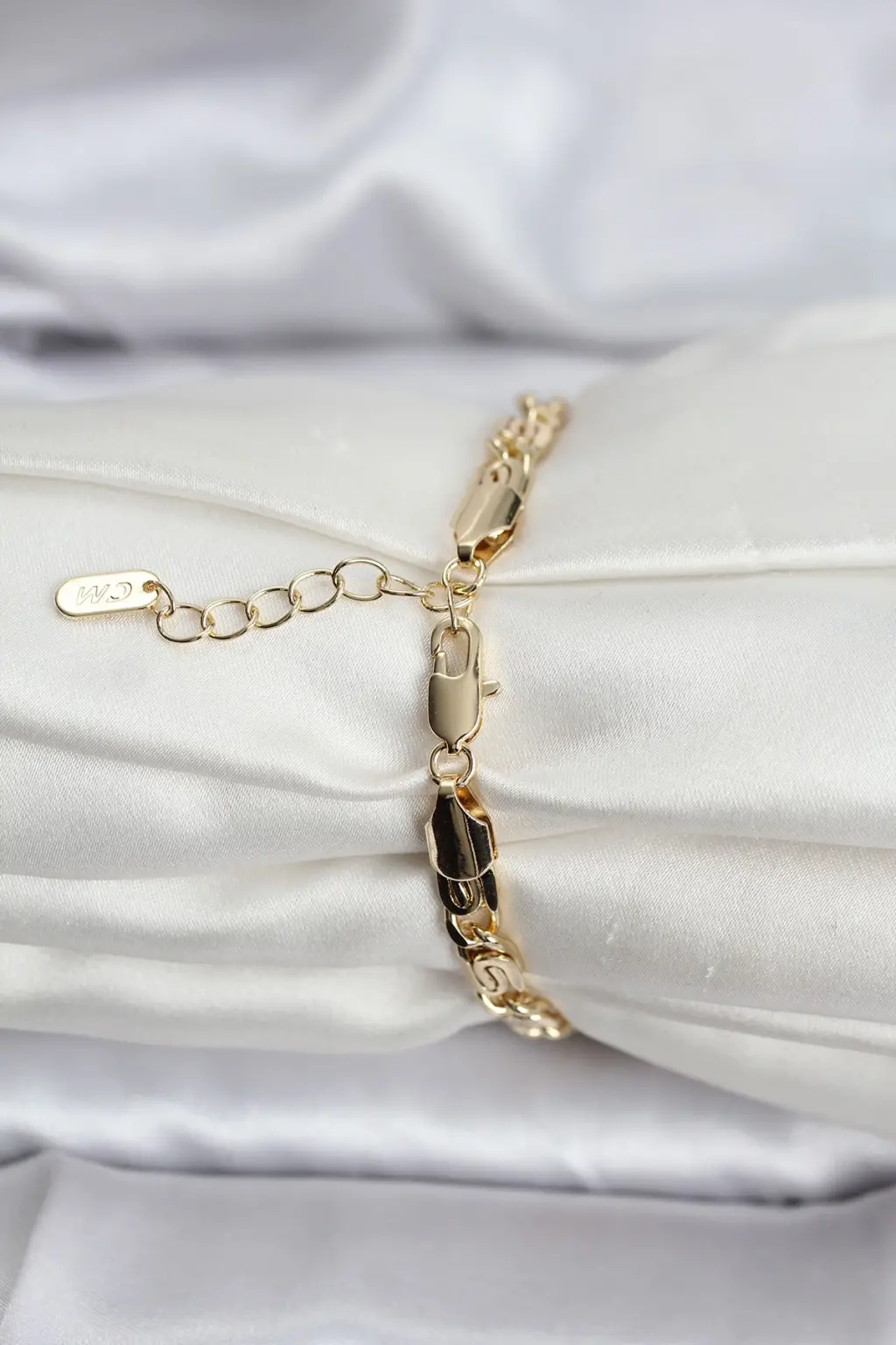 14K Gold Renk Kaplama Zincir Model CM Kadın Bileklik Eşşiz tasarımıyla sizlerle. En uygun fiyat garantili kararmaz modelimiz karşınızda.