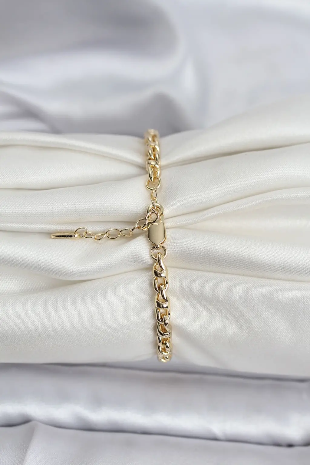 İnce zincir detaylarıyla zarif bir görünüm sunan bileklik, her tarza kolayca uyum sağlar.