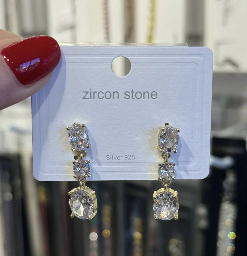 3 Katlı Sallantılı Baget Damla Taşlı Su Yolu Abiye Küpe