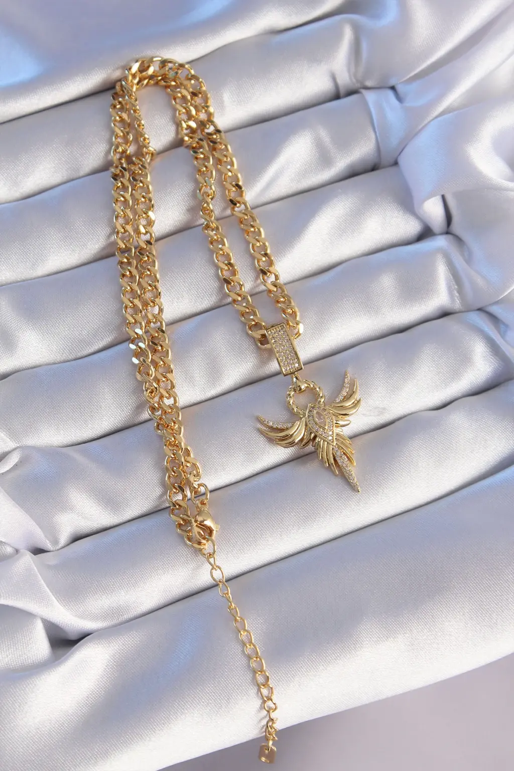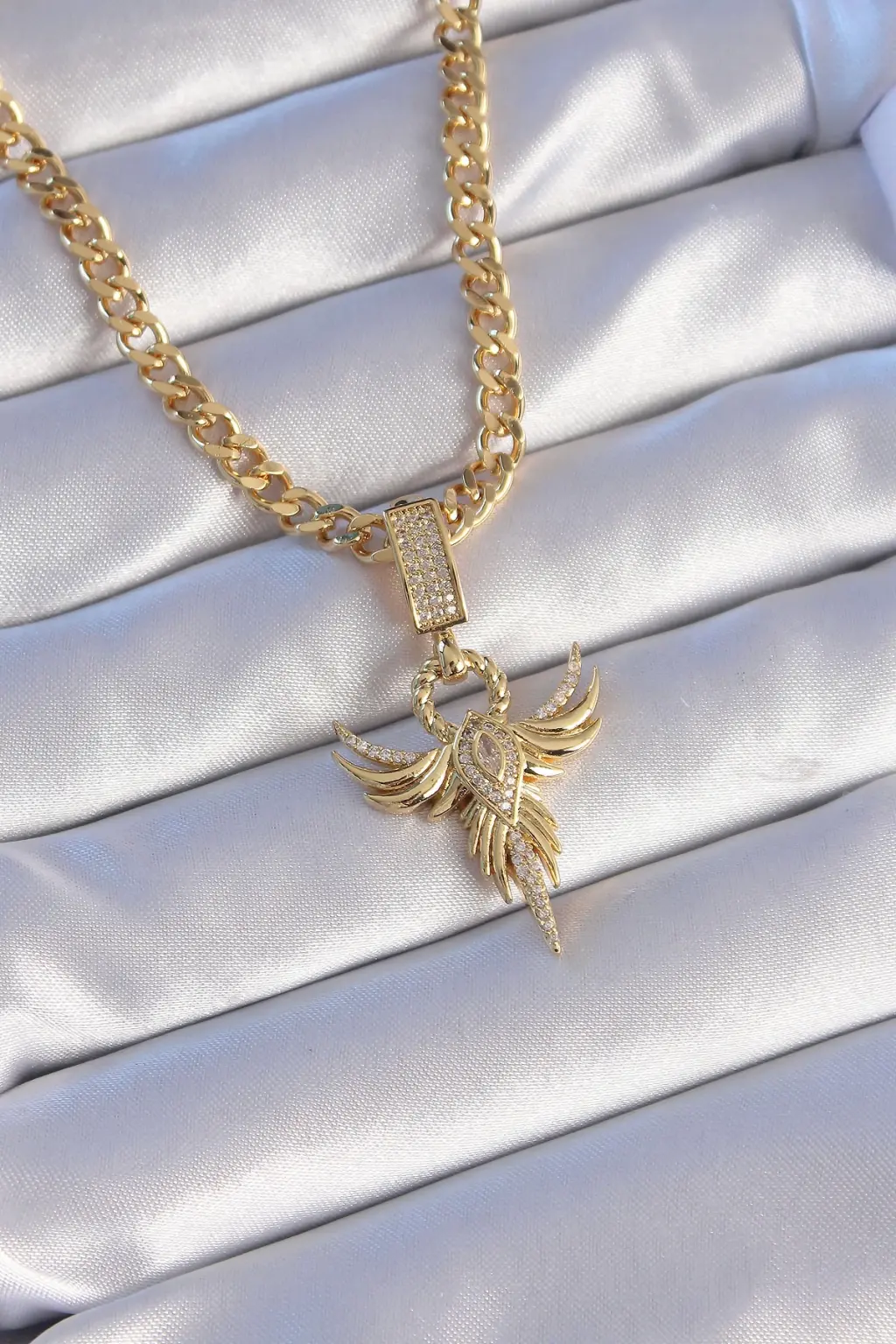 Altın Zirkon Taşlı Anka Kuşu Model Çelik Kolye Zarif detaylarla, göz alıcı tasarımlarla bezenmiş özel tasarım
