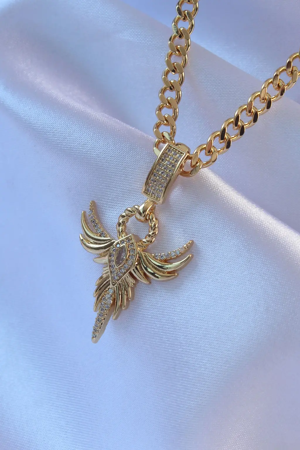 Altın Zirkon Taşlı Anka Kuşu Model Çelik Kolye Eşşiz tasarımıyla sizlerle. En uygun fiyat garantili kararmaz modelimiz karşınızda.