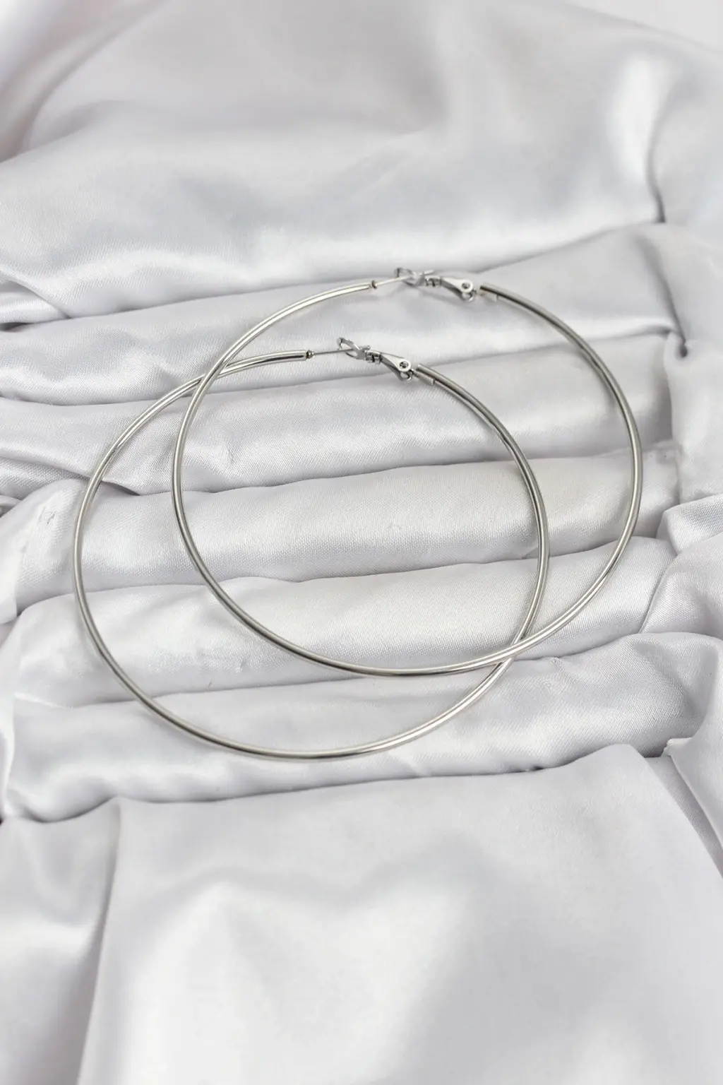 Gleam markasının 316L çelik malzemeden üretilen gümüş renkli 75 mm halka küpe, şıklık ve zarafeti bir arada sunuyor.