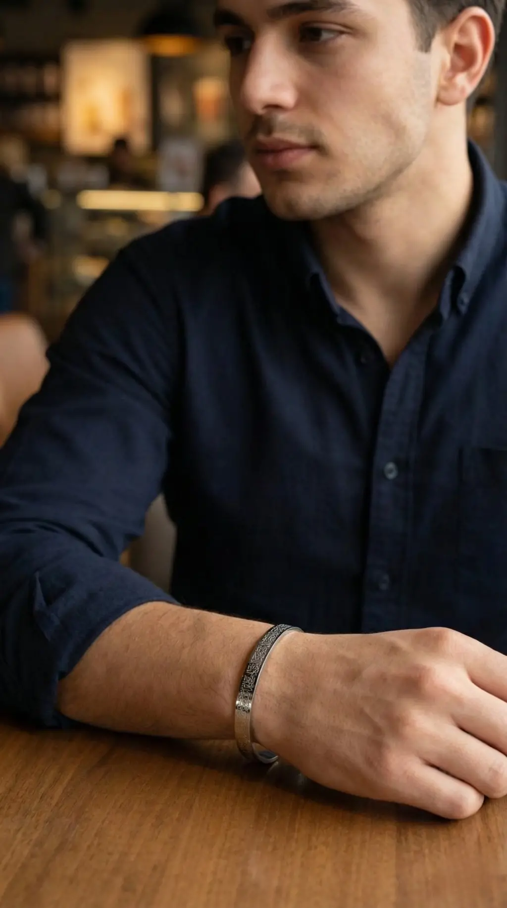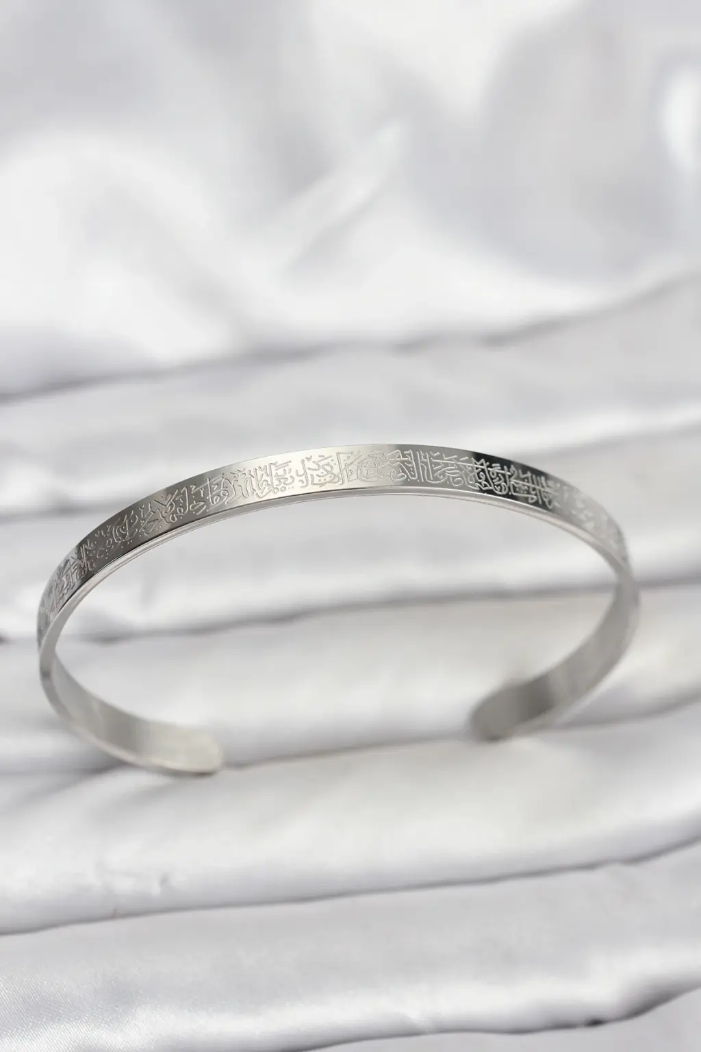 Gleam markasının tasarladığı 316L Çelik Gümüş Renk Ayetel Kürsi Yazılı Bileklik, erkekler için şık ve anlamlı bir aksesuar seçeneği sunuyor.