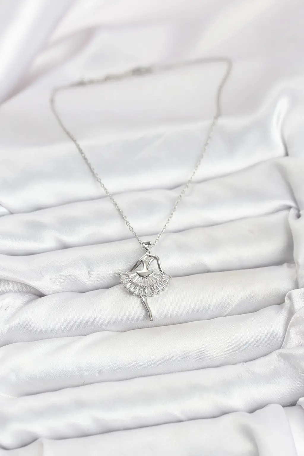 316L Çelik Gümüş Renk Balerin Model Kadın Kolye Eşşiz tasarımıyla sizlerle. En uygun fiyat garantili kararmaz modelimiz karşınızda.