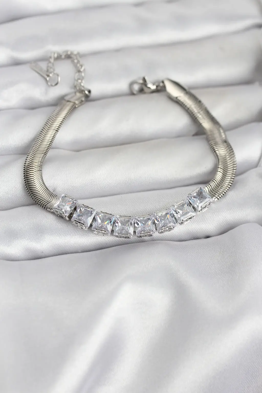 316L Çelik Gümüş Renk Kare Zirkon Taşlı Yılan Zincirli Kadın Bileklik, hem günlük hayatta hem de özel günlerde kullanabileceğiniz şık bir seçenektir. Kendiniz için veya sevdikleriniz için harika bir hediye seçeneği olacaktır.