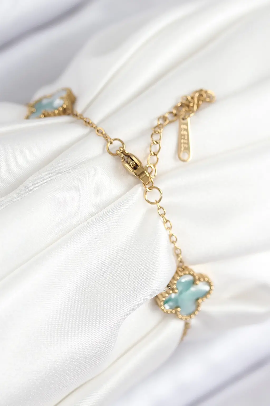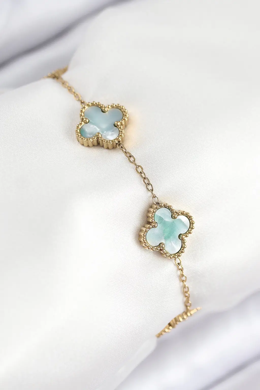 316L Çelik Sedefli Yeşil Gold Renk Yonca Kadın Bileklik Eşşiz tasarımıyla sizlerle. En uygun fiyat garantili kararmaz modelimiz karşınızda.