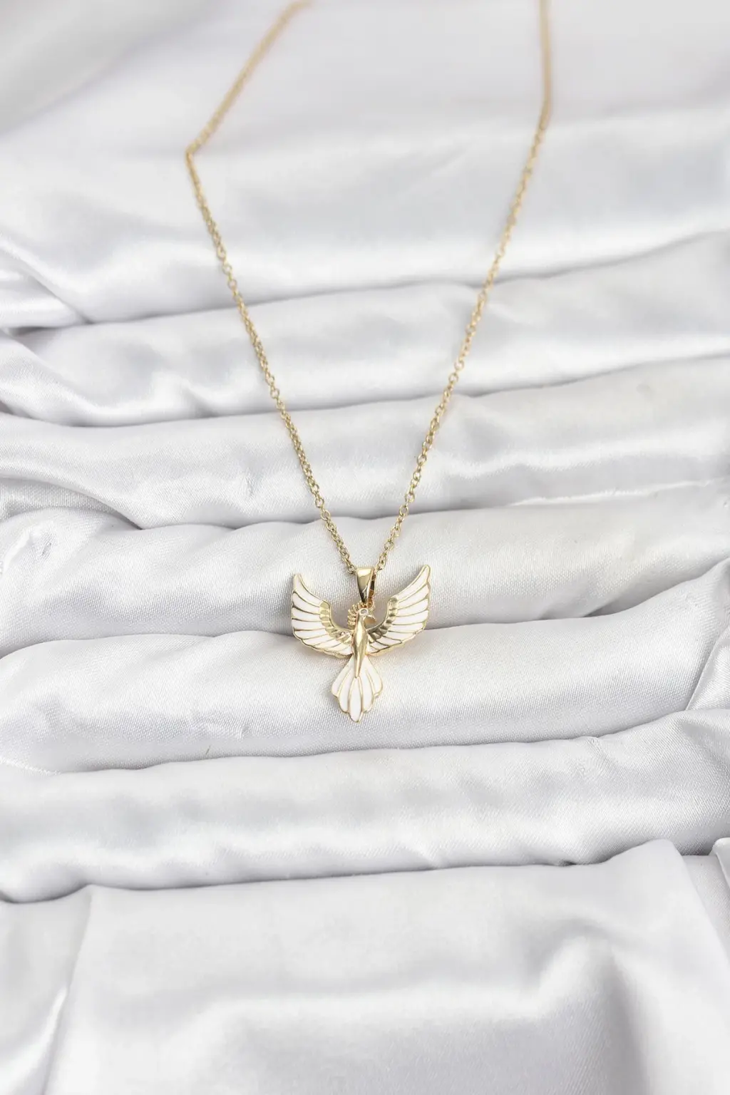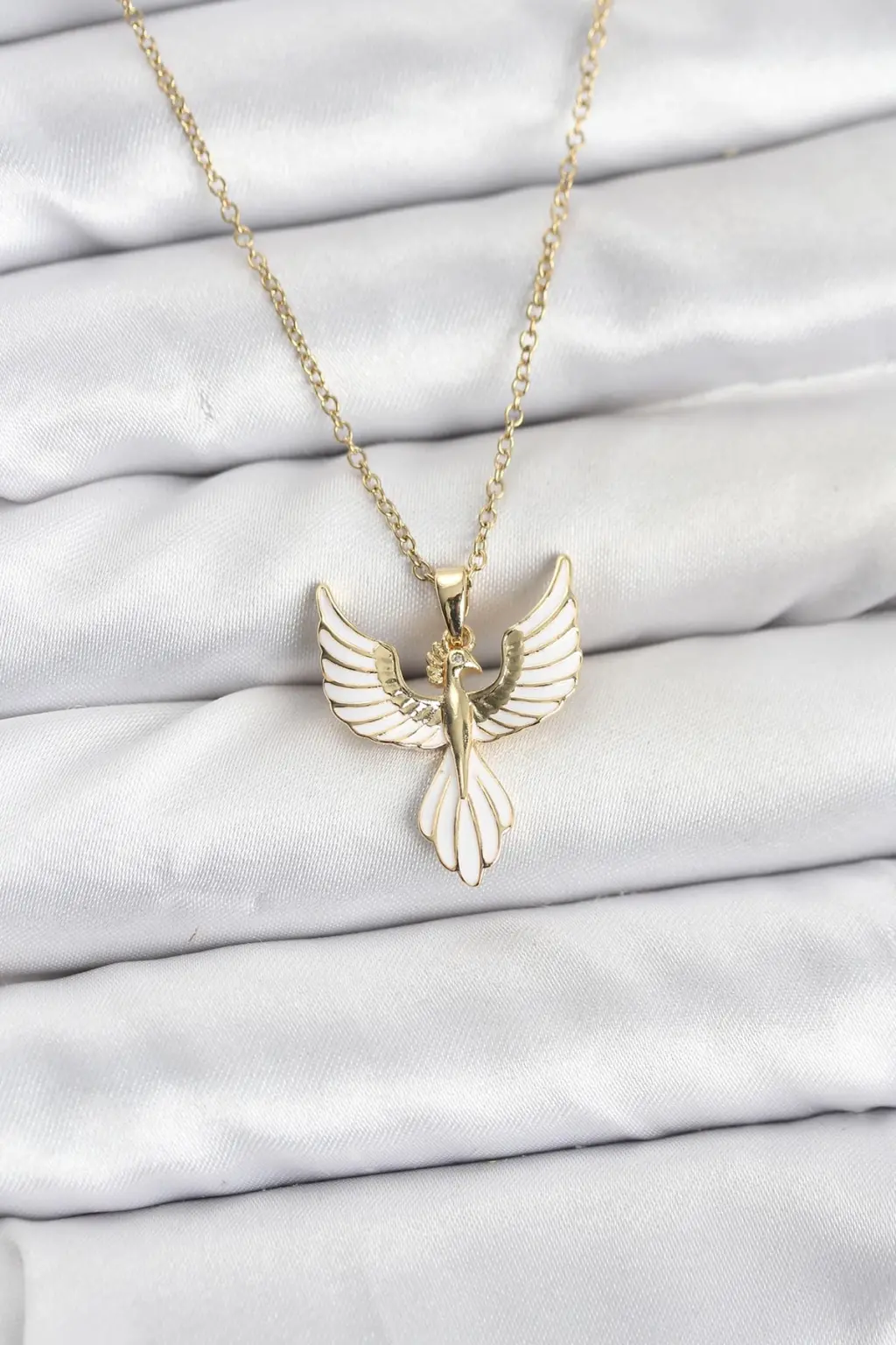 - Anka kuşu modeli kolyenin zarif ve şık görünümünü tamamlar.