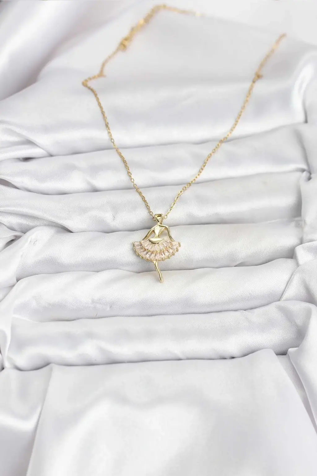 Balerin figürü detaylı olarak işlenmiş 316L çelikten üretilmiş Gold renkli bu şık kadın kolye, Gleam markasıyla sizleri bekliyor. Sade ve zarif tasarımıyla günlük kullanıma uygun olan bu çelik kolye, her türlü kombin ile mükemmel bir uyum sağlar.