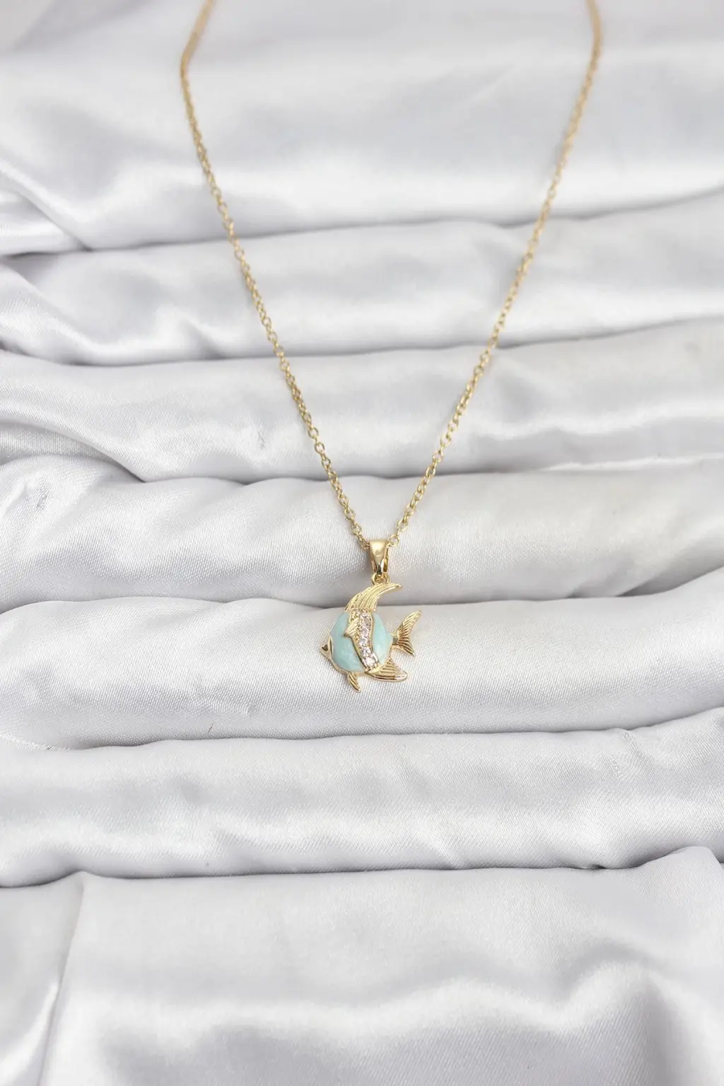 316L Çelik Zincir Gold Renk Balık Model Zirkon Taşlı Kadın Kolye özel tasarım