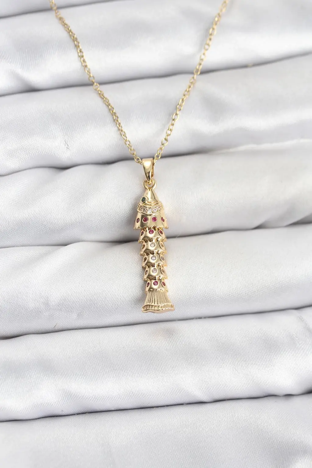 Gleam marka 316L Çelik Zincir Gold Renk Balık Model Zirkon Taşlı Kadın Kolye, şıklığı ve zarafeti bir arada sunuyor.