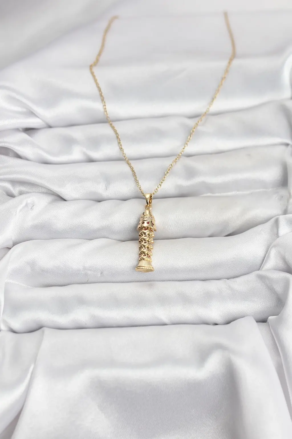 Gleam 316L Çelik Zincir Gold Renk Balık Model Zirkon Taşlı Kadın Kolye, günlük kullanım için ideal bir seçenektir.