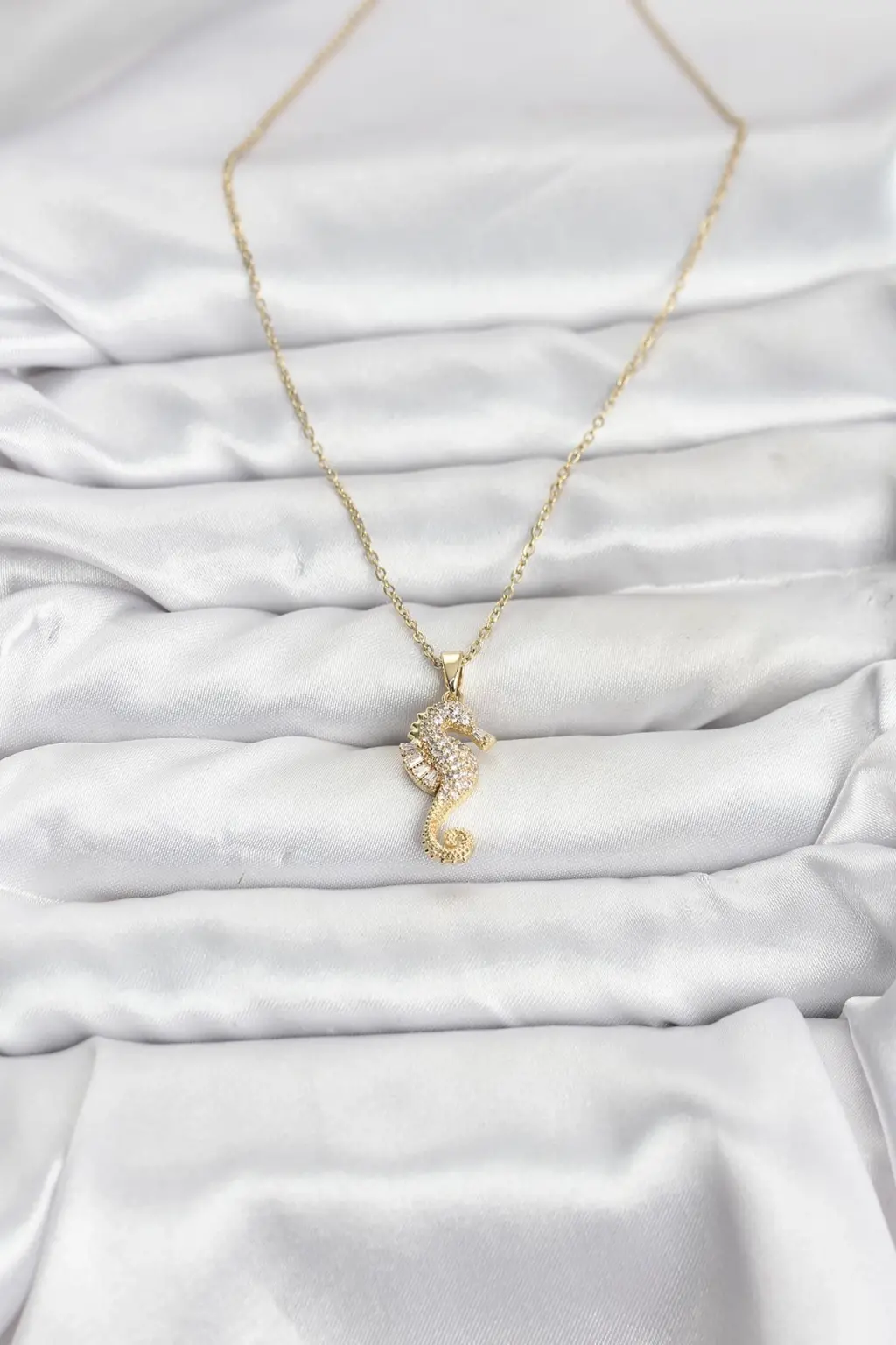 Gleam'in şık ve zarif tasarımıyla ön plana çıkan 316L Çelik Zincir Gold Renk Deniz Atı Model Zirkon Taşlı Kadın Kolye, benzersiz detaylarıyla stilinize farklı bir hava katacak.