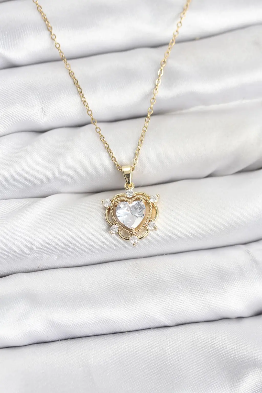 Gleam markalı 316L Çelik Zincir Gold Renk Kalp Model Zirkon Taşlı Kadın Kolye, şıklığı ve zarafeti bir arada sunar. Bu özel kolye ile tarzınızı tamamlayabilir, her ortamda dikkatleri üzerinize çekebilirsiniz.