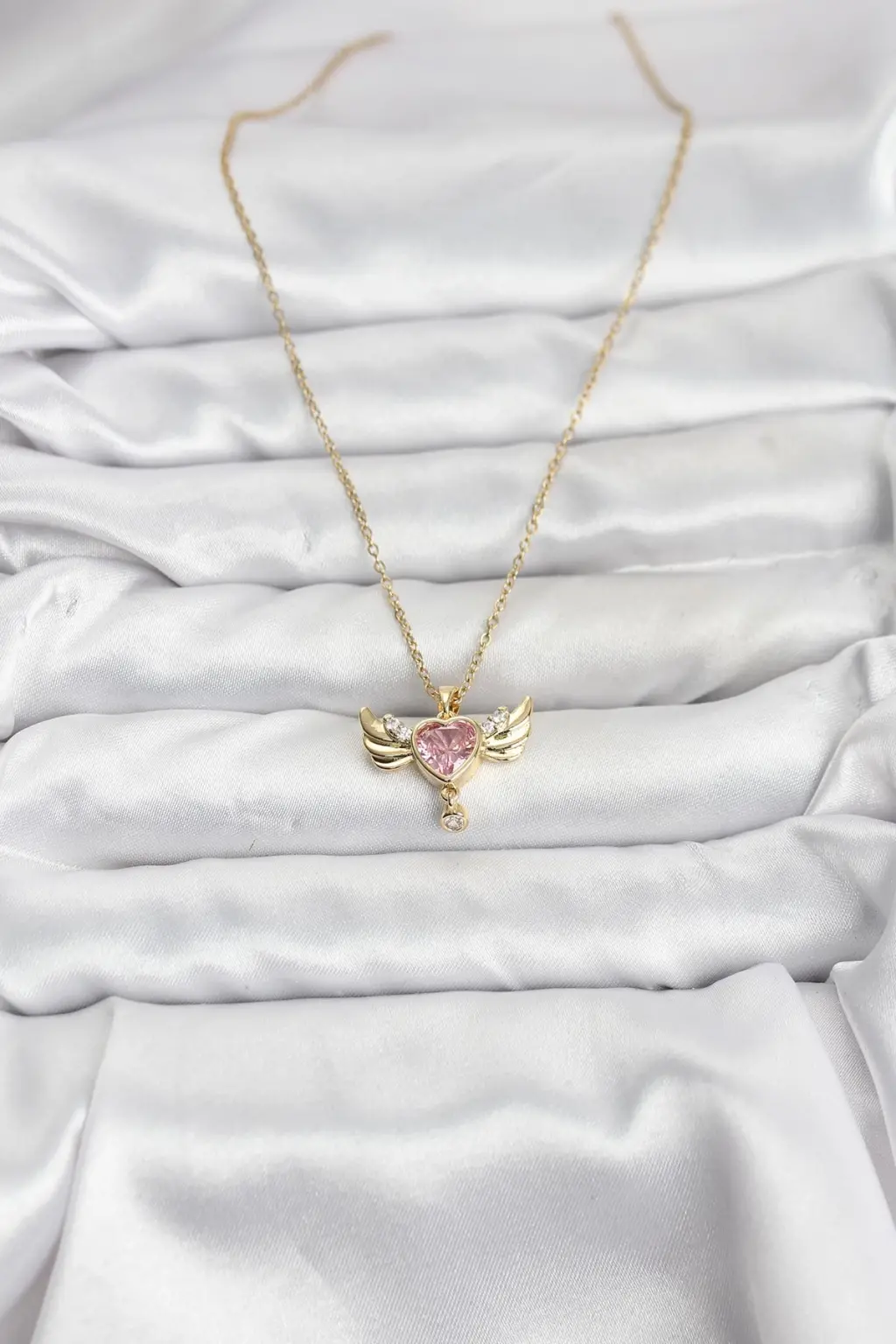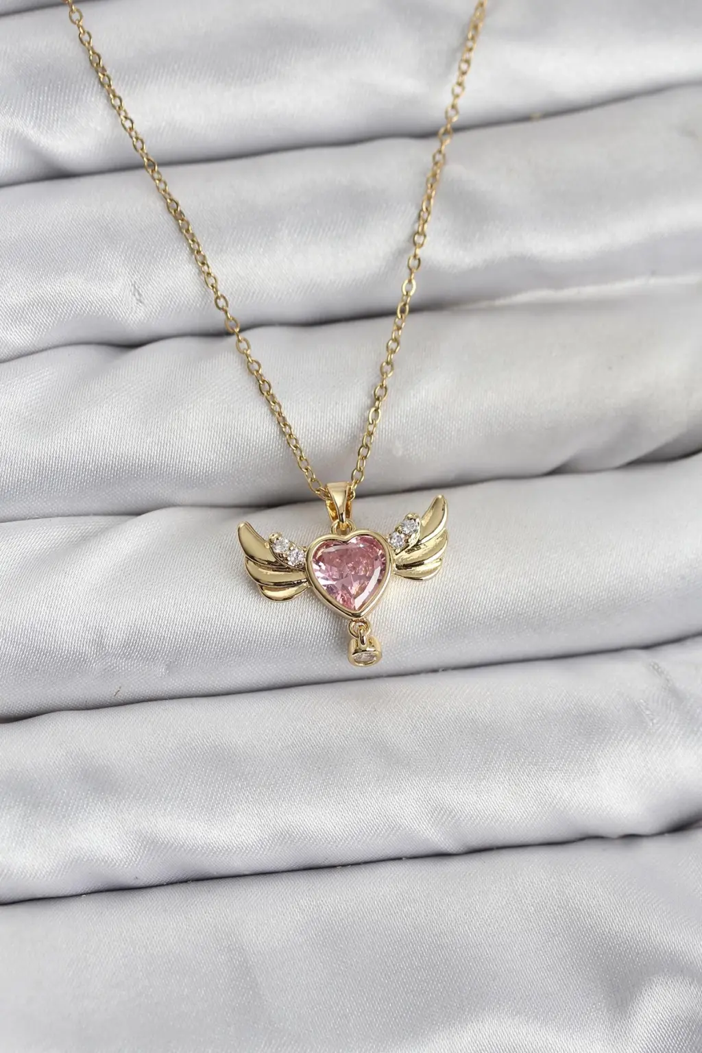 316L Çelik Zincir Gold Renk Kanatlı Kalp Model Zirkon Taşlı Kadın Kolye Eşşiz tasarımıyla sizlerle. En uygun fiyat garantili kararmaz modelimiz karşınızda.