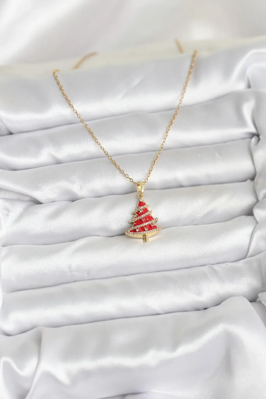 316L Çelik Zincir Gold Renk Kırmızı Çam Ağacı Model Yılbaşı Temalı Kadın Kolye, Gleam'in özel tasarımıyla şıklığı ve zarafeti bir araya getiriyor. Bu kolye, yeni yılın heyecanını ve coşkusunu taşıyacak önemli bir takı parçasıdır.
