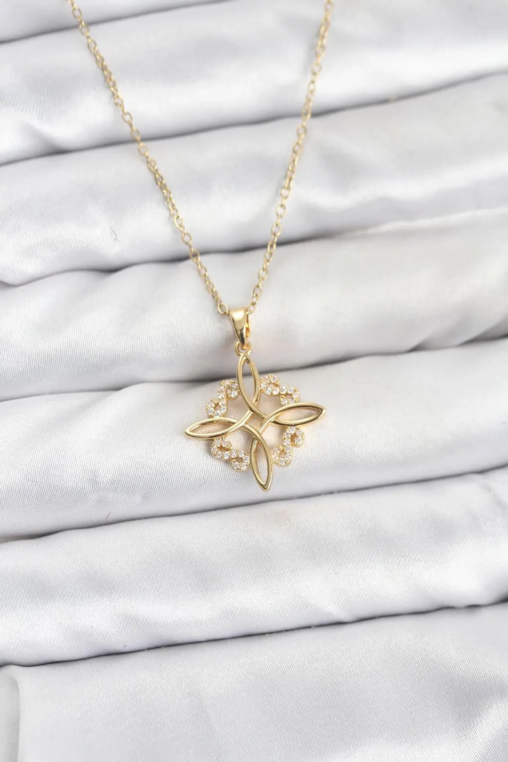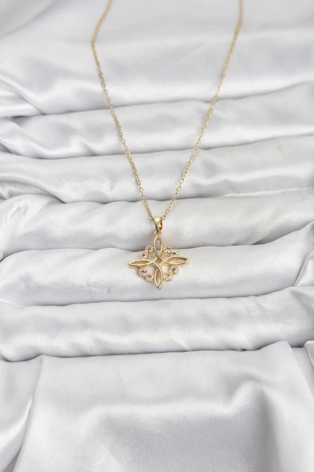 - Zirkon taşlar kolyenin üzerindeki detayları daha da öne çıkarmaktadır.