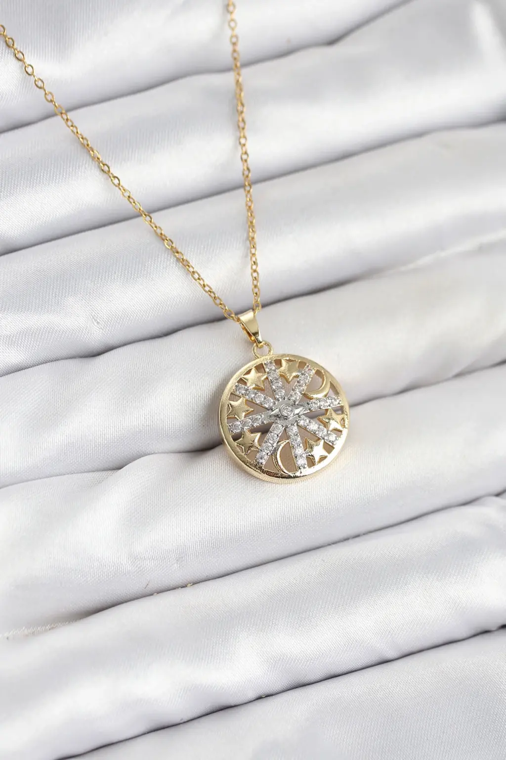 316L Çelik Zincir Gold Renk Zirkon Taşlı Kadın Kolye Zarif detaylarla, göz alıcı tasarımlarla bezenmiş özel tasarım