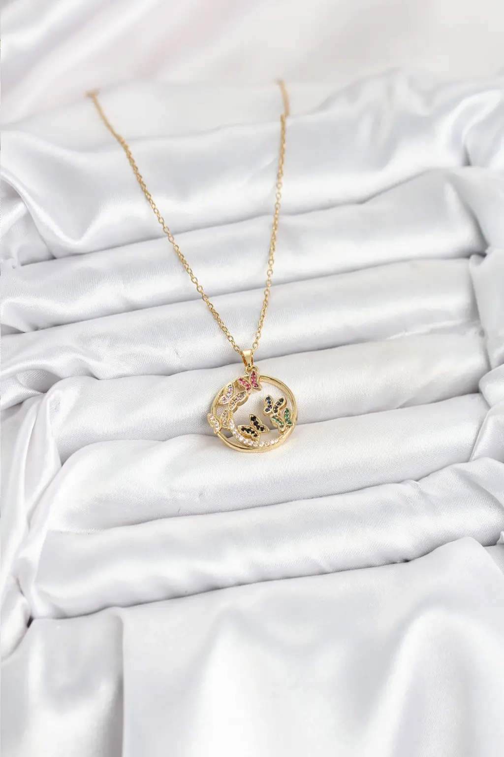 - Zirkon taşlarla süslenmiş kelebek detayı, kolyeyi daha şık ve benzersiz hale getirir.