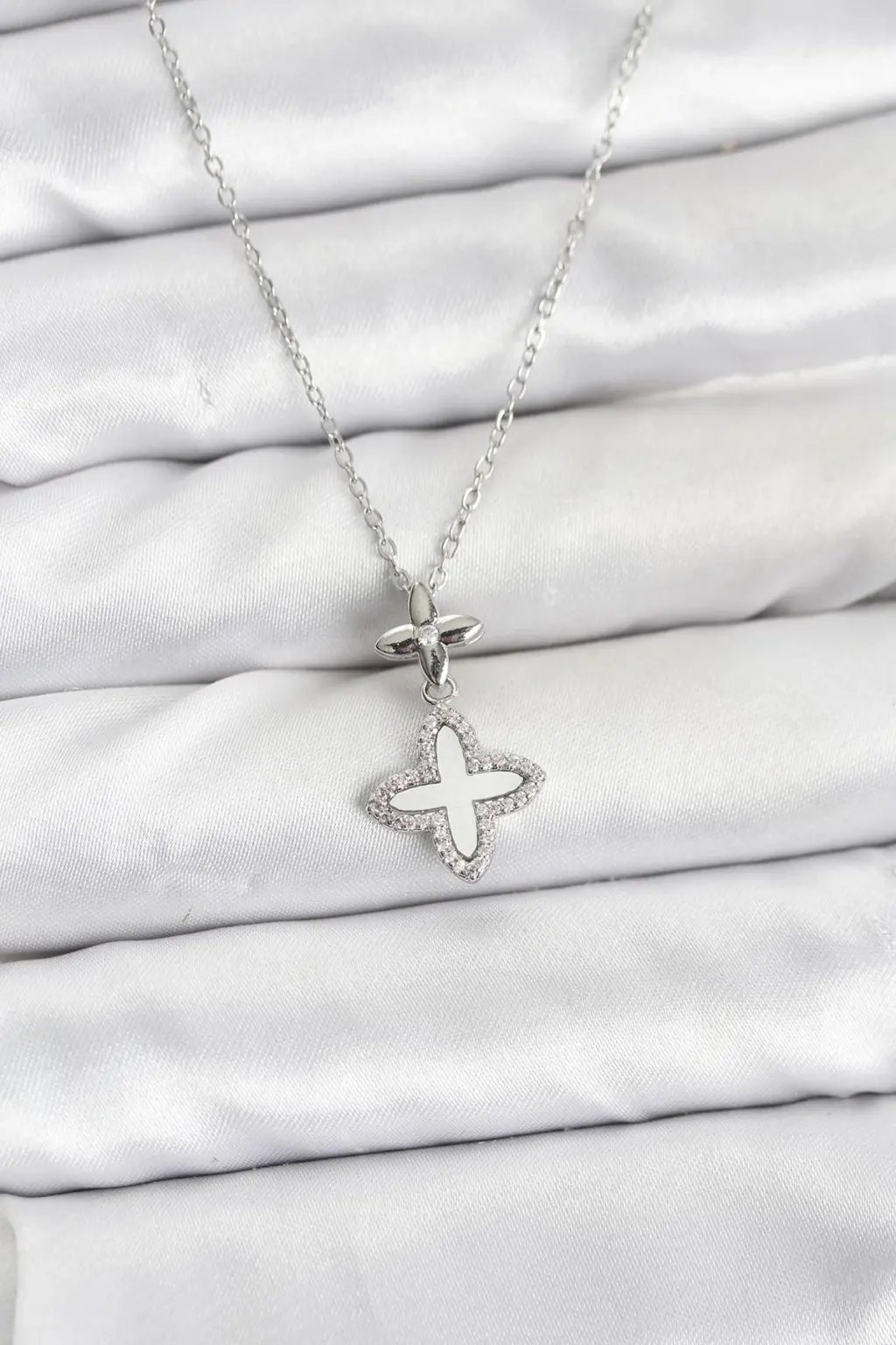 Gleam marka 316L Çelik Zincir Gümüş Renk 4 Yapraklı Yonca Model Zirkon Taşlı Kadın Kolye, şıklığı ve zarafeti bir arada sunuyor.