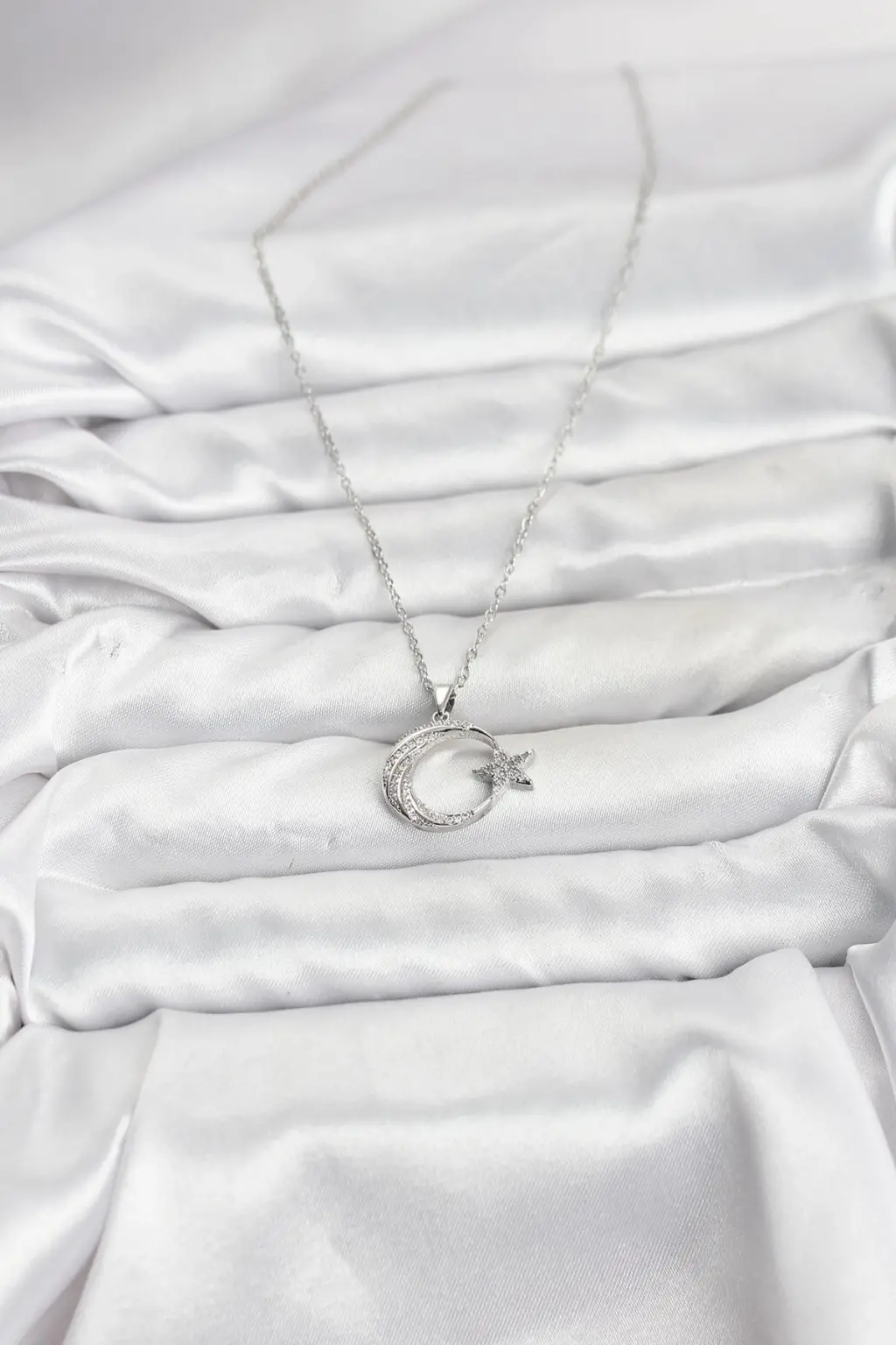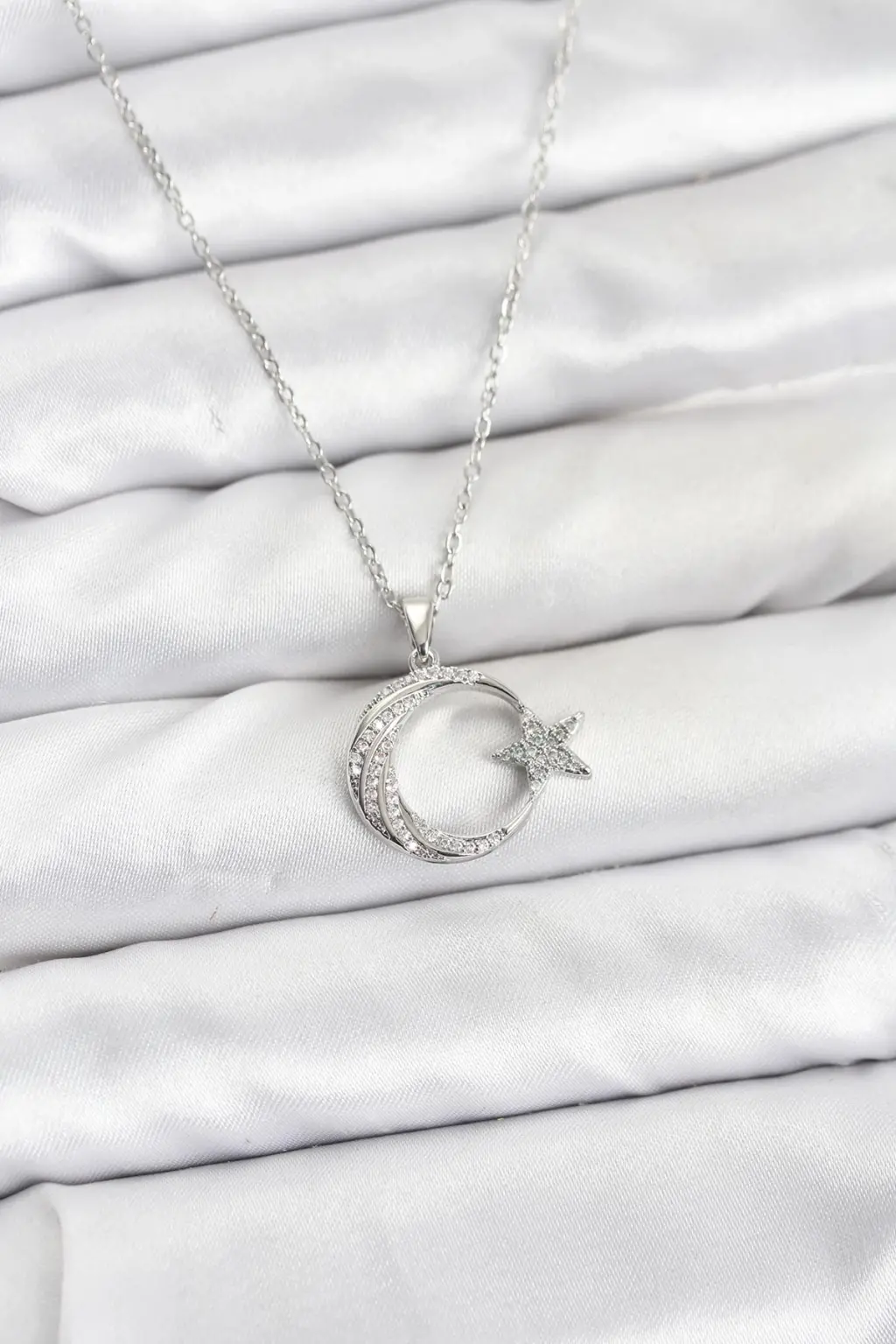 316L Çelik Zincir Gümüş Renk Ay Yıldız Model Zirkon Taşlı Kadın Kolye, Gleam kalitesiyle şimdi sizin için!