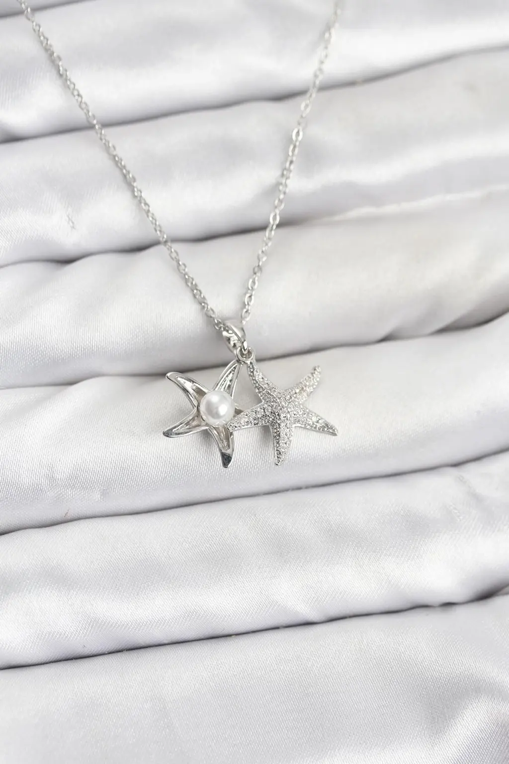 Deniz yıldızı modeli, yazın sıcak günlerinde plaj şıklığınızı yansıtırken, zirkon taşlar kolyeye ekstra bir parlaklık katar. Bu muhteşem kolye, her yaş grubundan kadının tercihi olmaya adaydır. Günlük hayatta ya da özel davetlerde rahatlıkla kullanabileceğiniz şık bir aksesuar arayışındaysanız, 316L Çelik Zincir Gümüş Renk Deniz Yıldızı Model Zirkon Taşlı Kadın Kolye tam size göre!