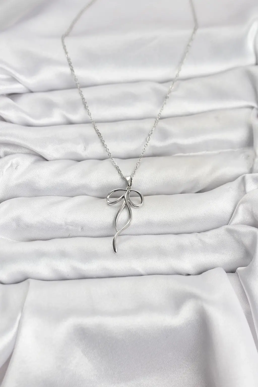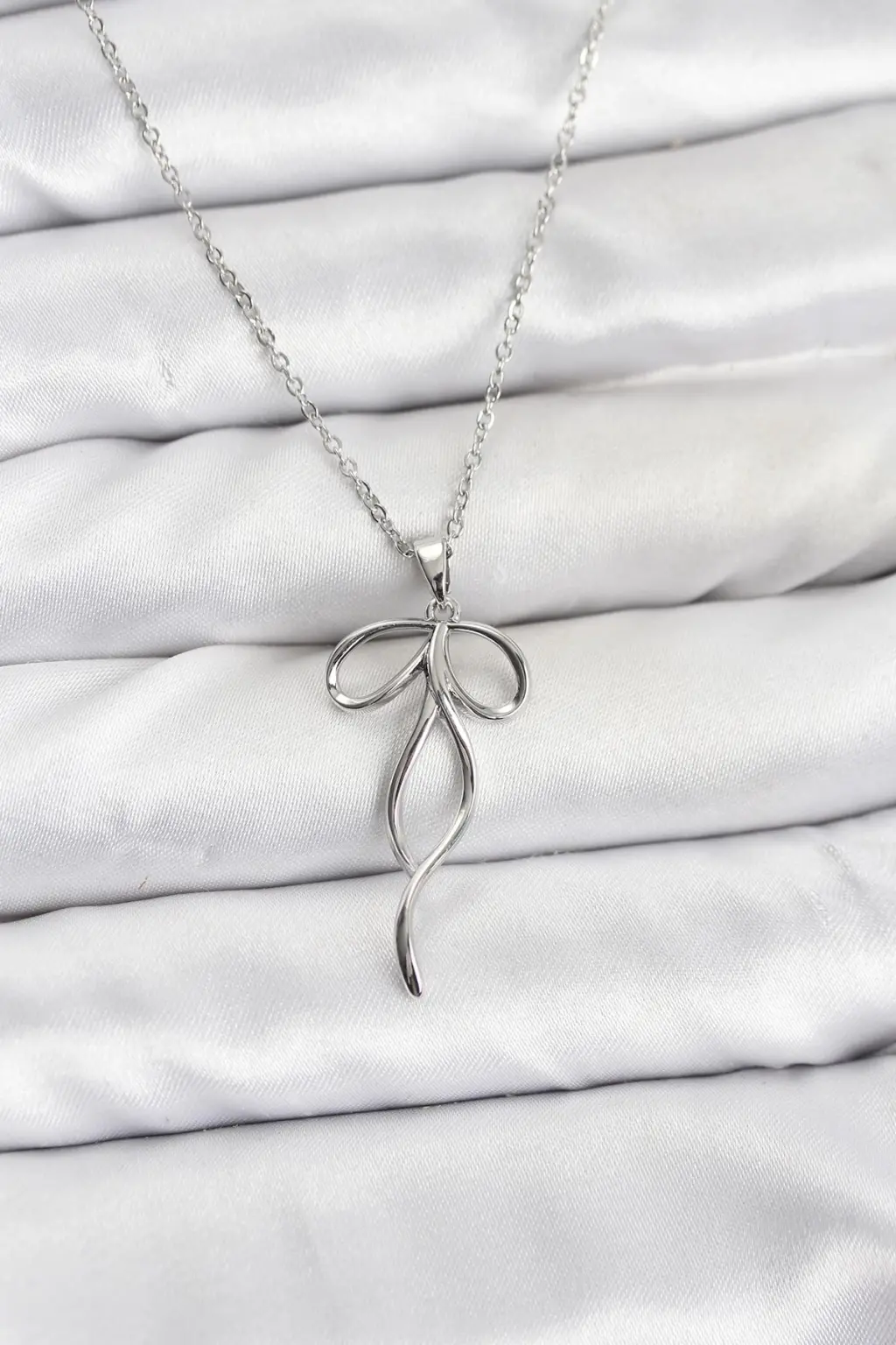 Gleam markalı çelik zincir gümüş renk fiyonk model kadın kolye, şıklığı ve zarafeti bir arada sunuyor.