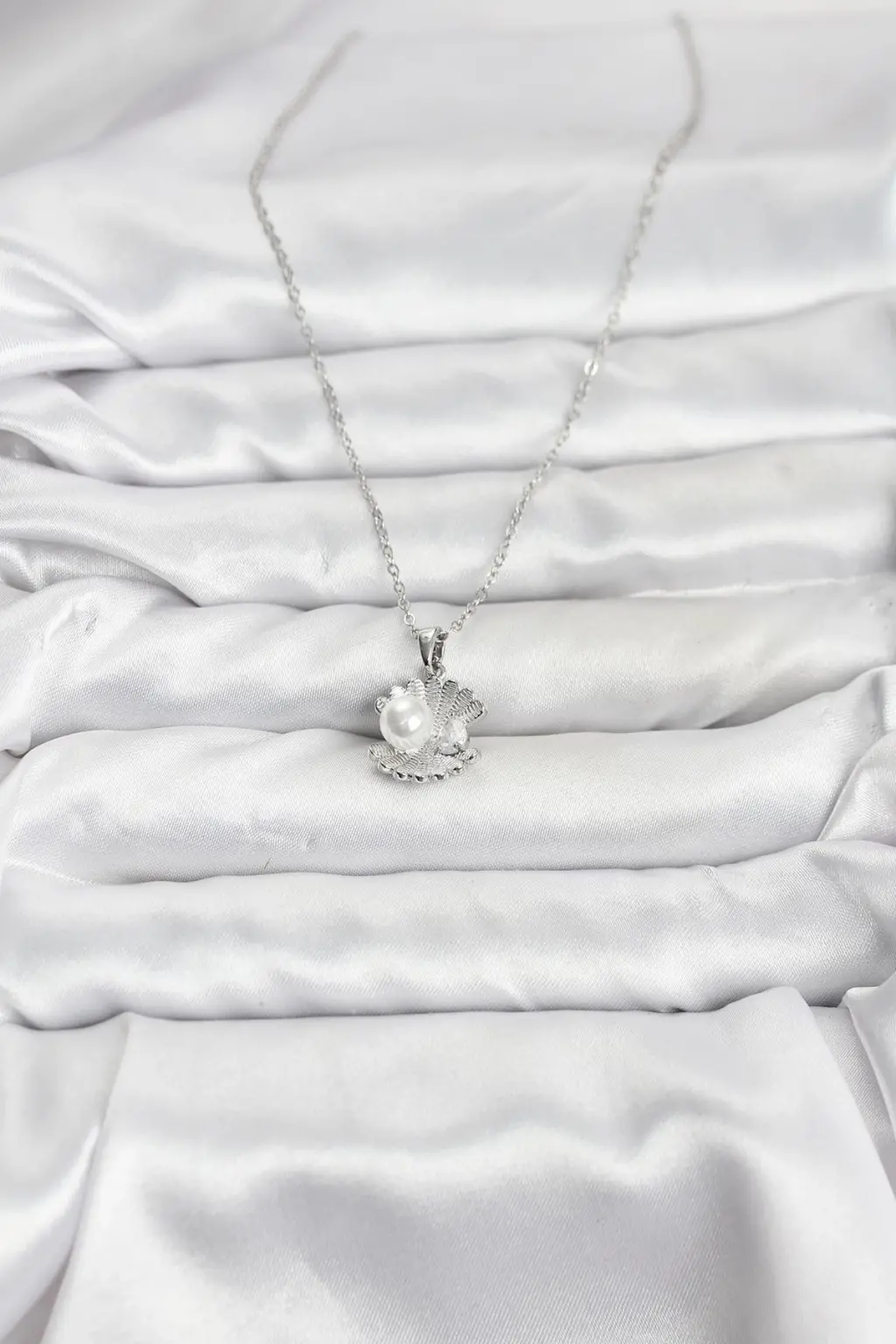 316L Çelik Zincir Gümüş Renk İstiridye İnci Model Zirkon Taşlı Kadın Kolye Eşşiz tasarımıyla sizlerle. En uygun fiyat garantili kararmaz modelimiz karşınızda.