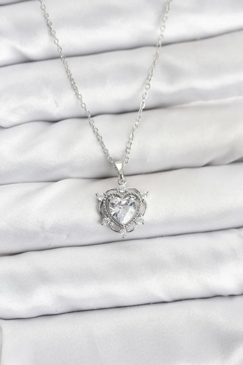 - Paket İçeriği: 316L Çelik Zincir Gümüş Renk Kalp Model Zirkon Taşlı Kadın Kolye