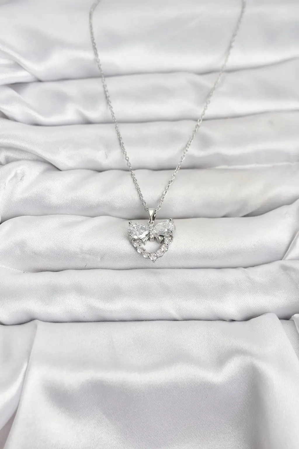 316L Çelik Zincir Gümüş Renk Kalp ve Fiyonk Model Zirkon Taşlı Kadın Kolye Zarif detaylarla, göz alıcı tasarımlarla bezenmiş özel tasarım