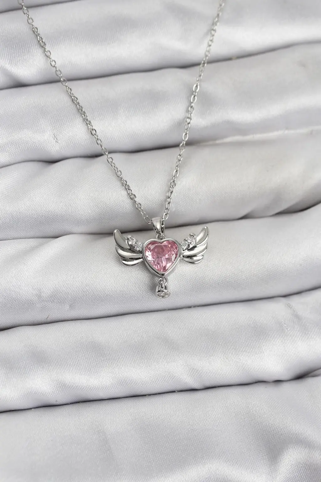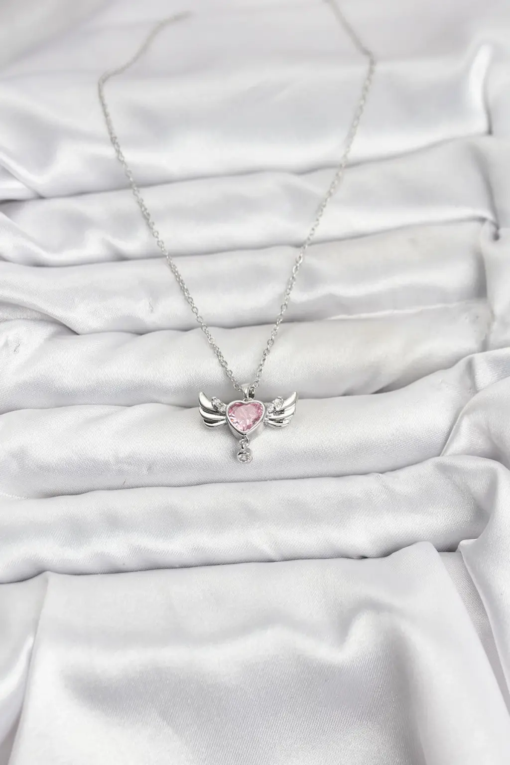 316L Çelik Zincir Gümüş Renk Kanatlı Kalp Model Zirkon Taşlı Kadın Kolye Zarif detaylarla, göz alıcı tasarımlarla bezenmiş özel tasarım