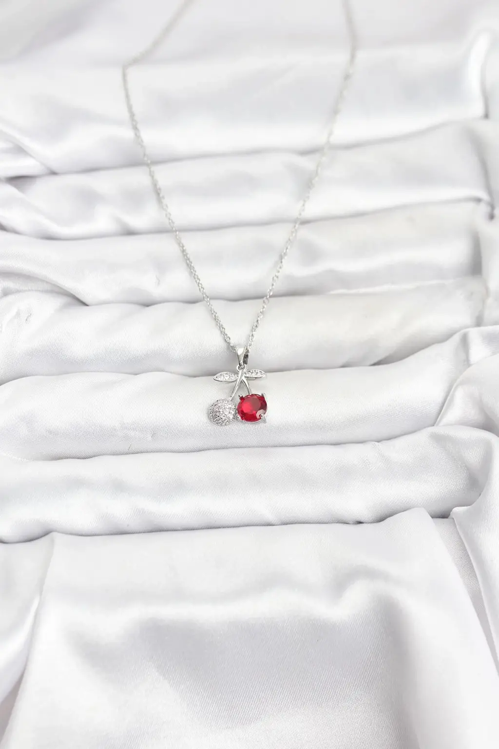 316L Çelik Zincir Gümüş Renk Kiraz Model Zirkon Taşlı Kadın Kolye Eşşiz tasarımıyla sizlerle. En uygun fiyat garantili kararmaz modelimiz karşınızda.