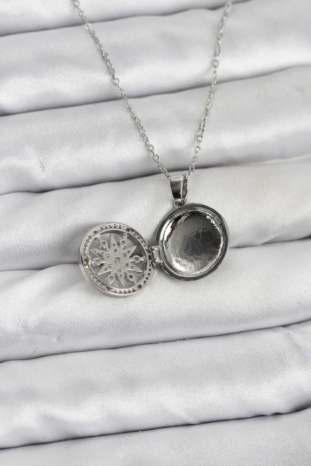 316L Çelik Zincir Gümüş Renk Kutup Yıldızı Kapaklı Model Kadın Kolye Eşşiz tasarımıyla sizlerle. En uygun fiyat garantili kararmaz modelimiz karşınızda.