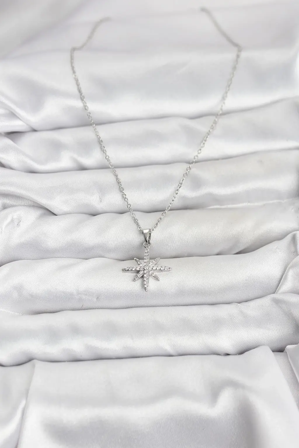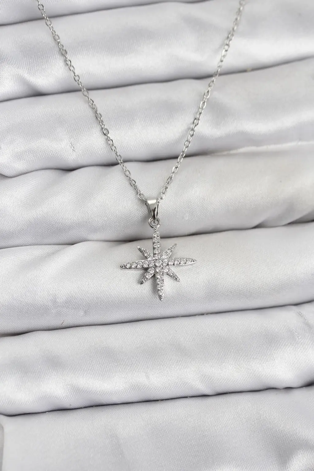 316L Çelik Zincir Gümüş Renk Kutup Yıldızı Model Zirkon Taşlı Kadın Kolye Eşşiz tasarımıyla sizlerle. En uygun fiyat garantili kararmaz modelimiz karşınızda.