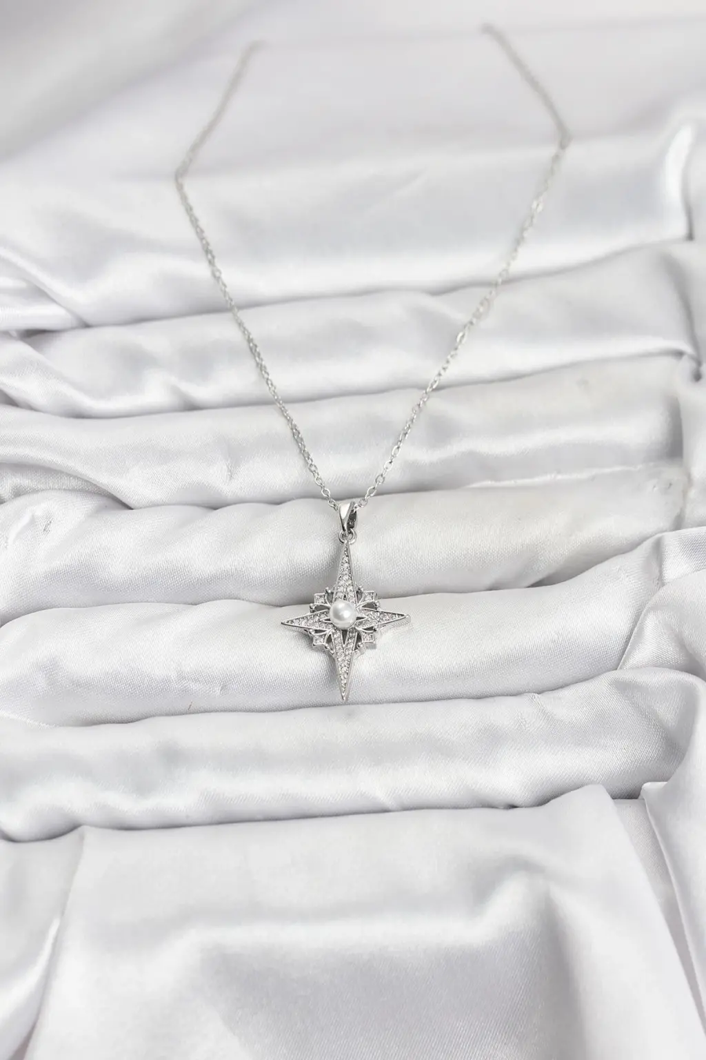 Bu zarif Gleam marka kadın kolye, 316L çelikten üretilmiştir ve gümüş renginde tasarlanmıştır. Kutup yıldızı modelindeki detayları ve zirkon taşlarıyla şık bir görünüm sunar.