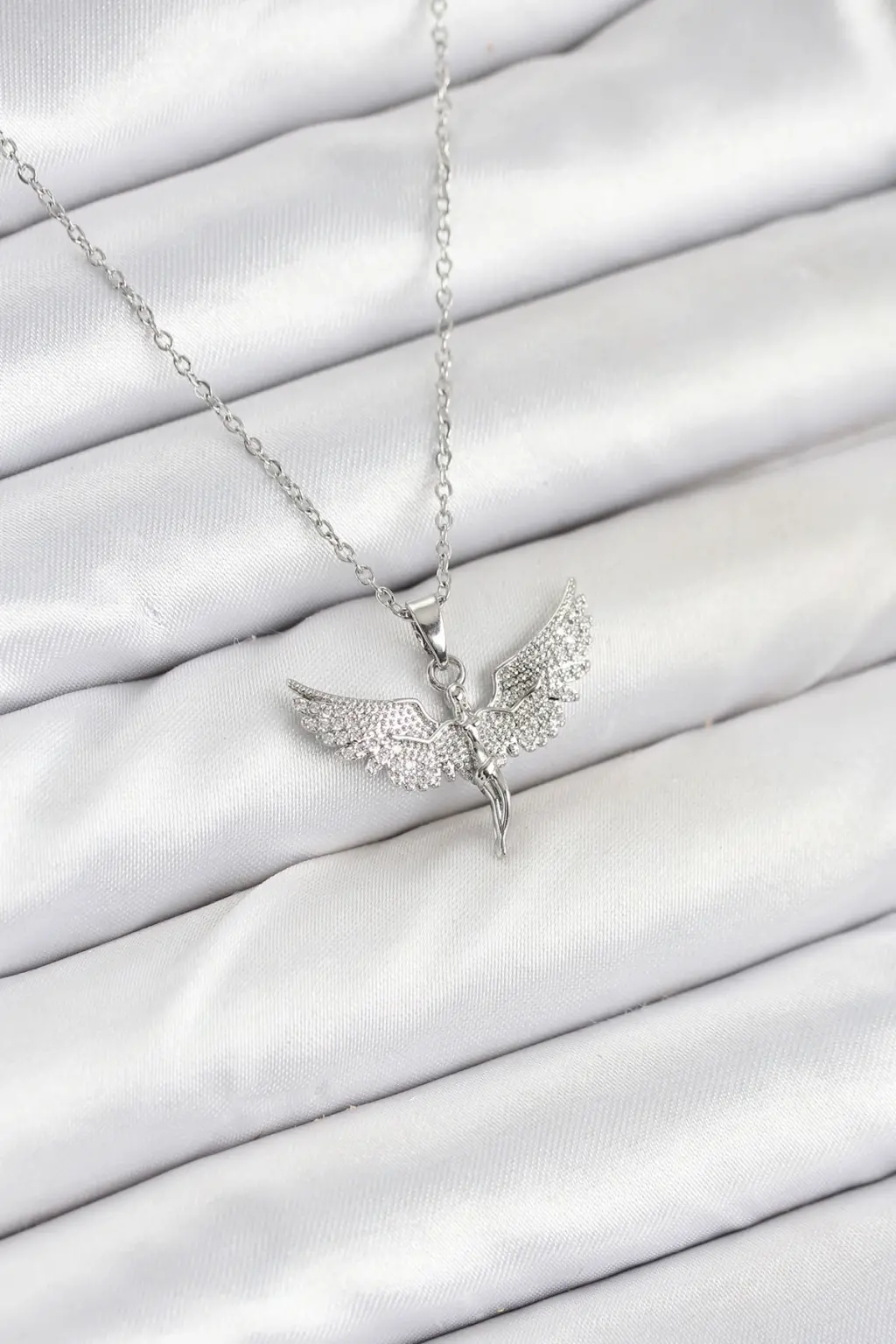 Gleam markasının 316L çelik zincir gümüş renk melek model kadın kolyesi, tarzınızı yansıtmak ve şıklığınızı tamamlamak için ideal bir seçimdir.
