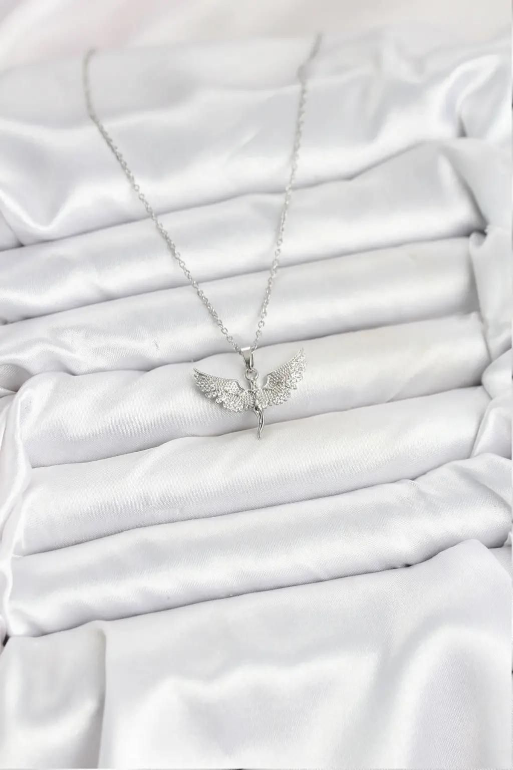 - Gümüş rengi ve melek modeli ile göz alıcı bir görünüm sunar.