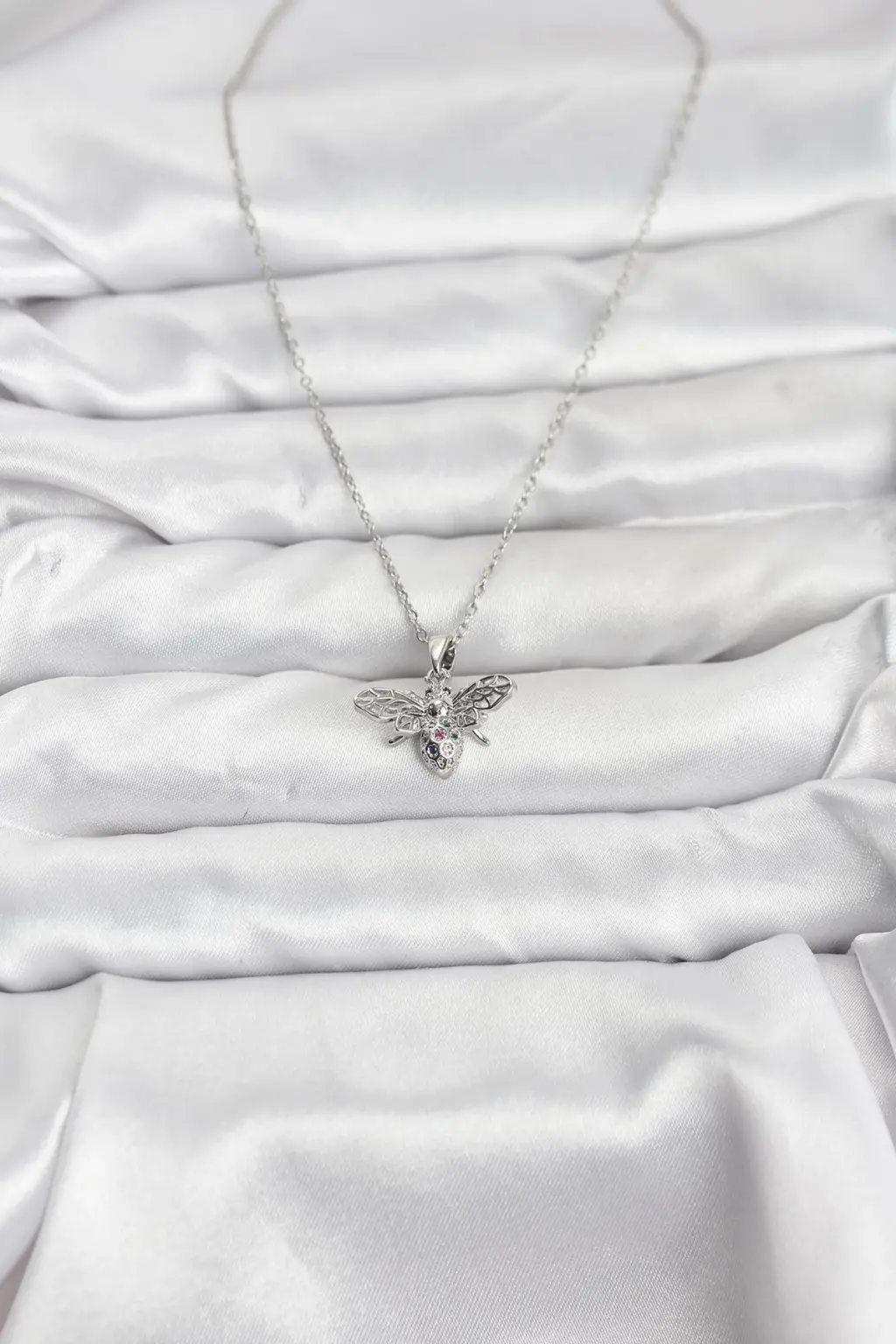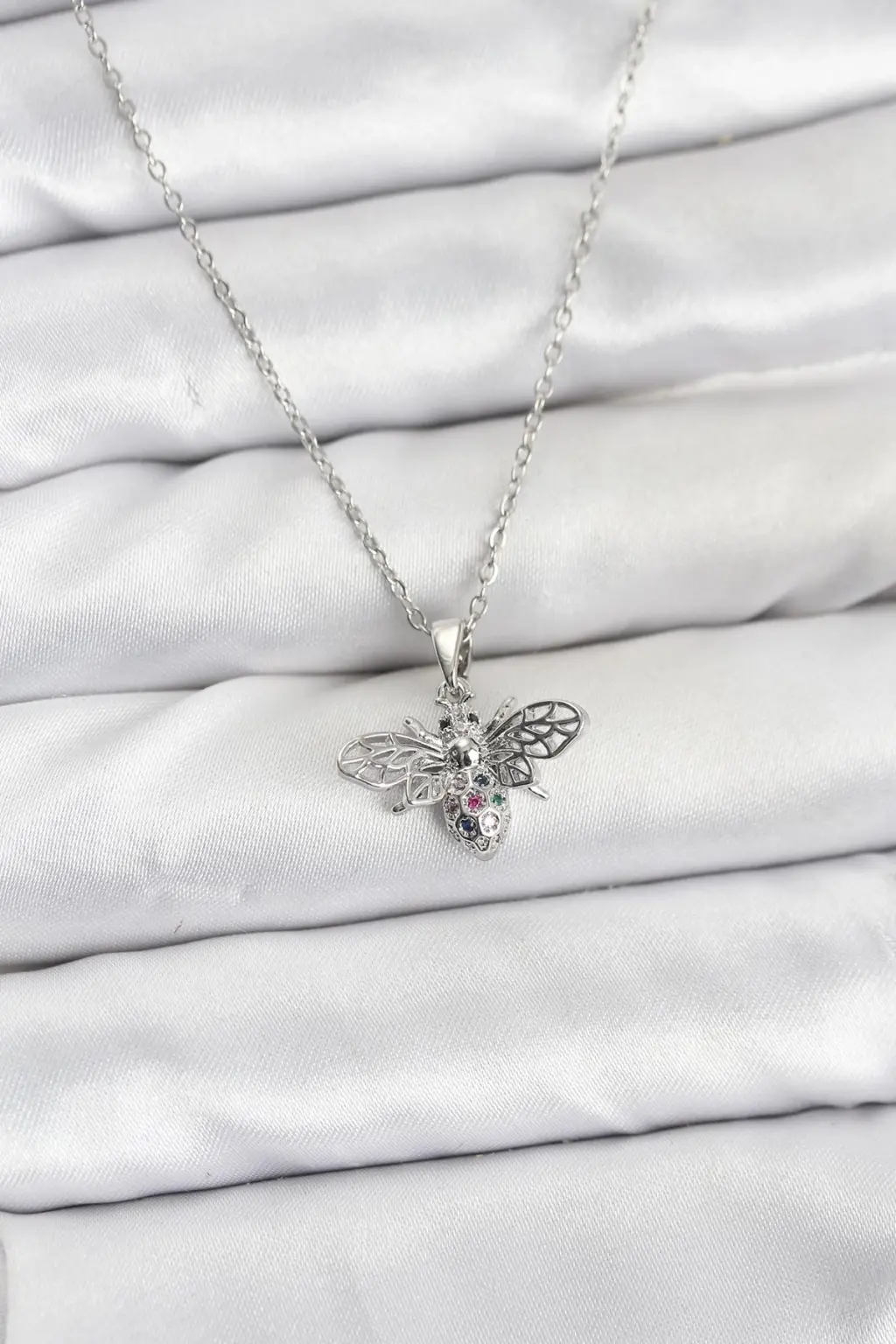 Göz alıcı tasarımı ve kaliteli malzemesiyle Gleam 316L Çelik Zincir Gümüş Renk Sinek Model Zirkon Taşlı Kadın Kolye, tarzınızı tamamlamak için ideal bir seçim olacaktır.
