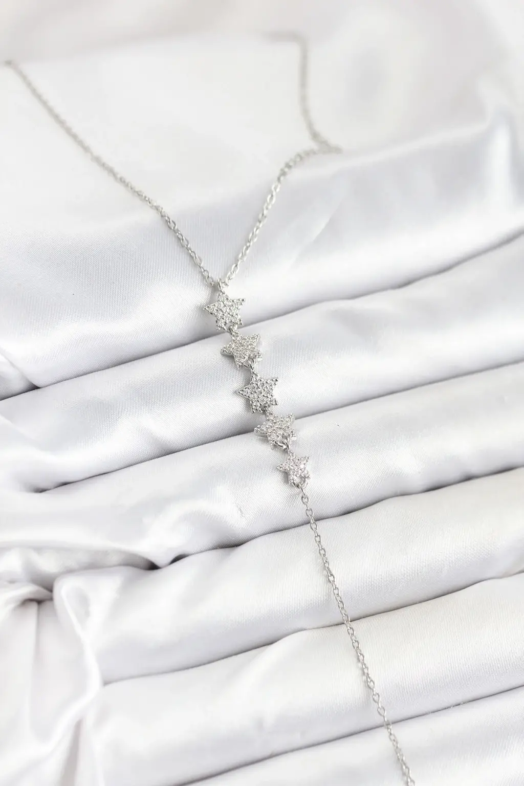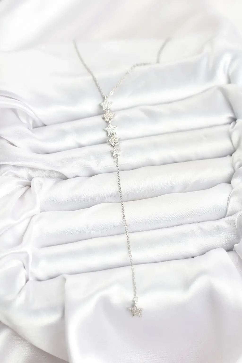 316L Çelik Zincir Gümüş Renk Yıldız Model Y Kolye özel tasarım