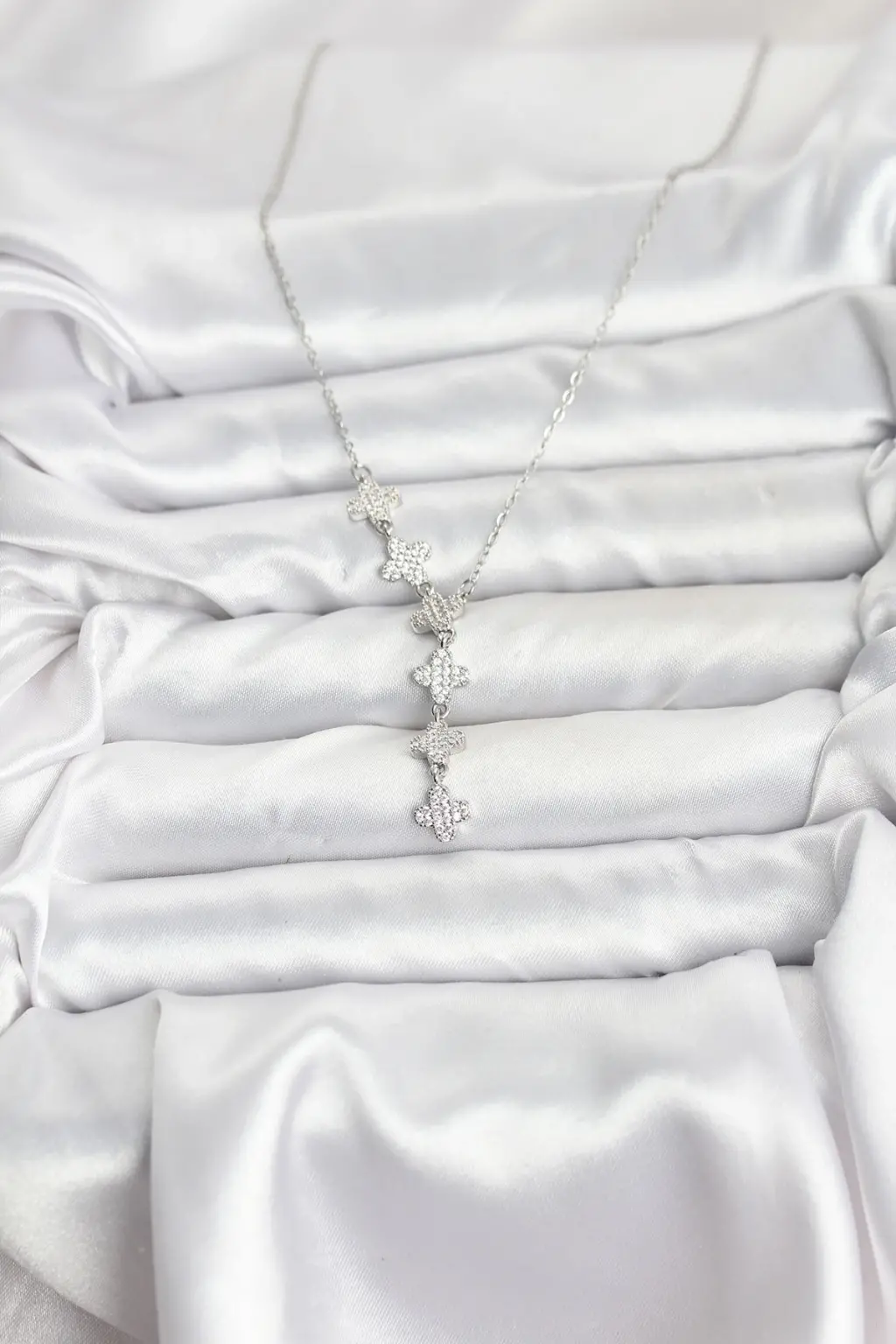 316L Çelik Zincir Gümüş Renk Yonca Model Kadın Kolye Eşşiz tasarımıyla sizlerle. En uygun fiyat garantili kararmaz modelimiz karşınızda.