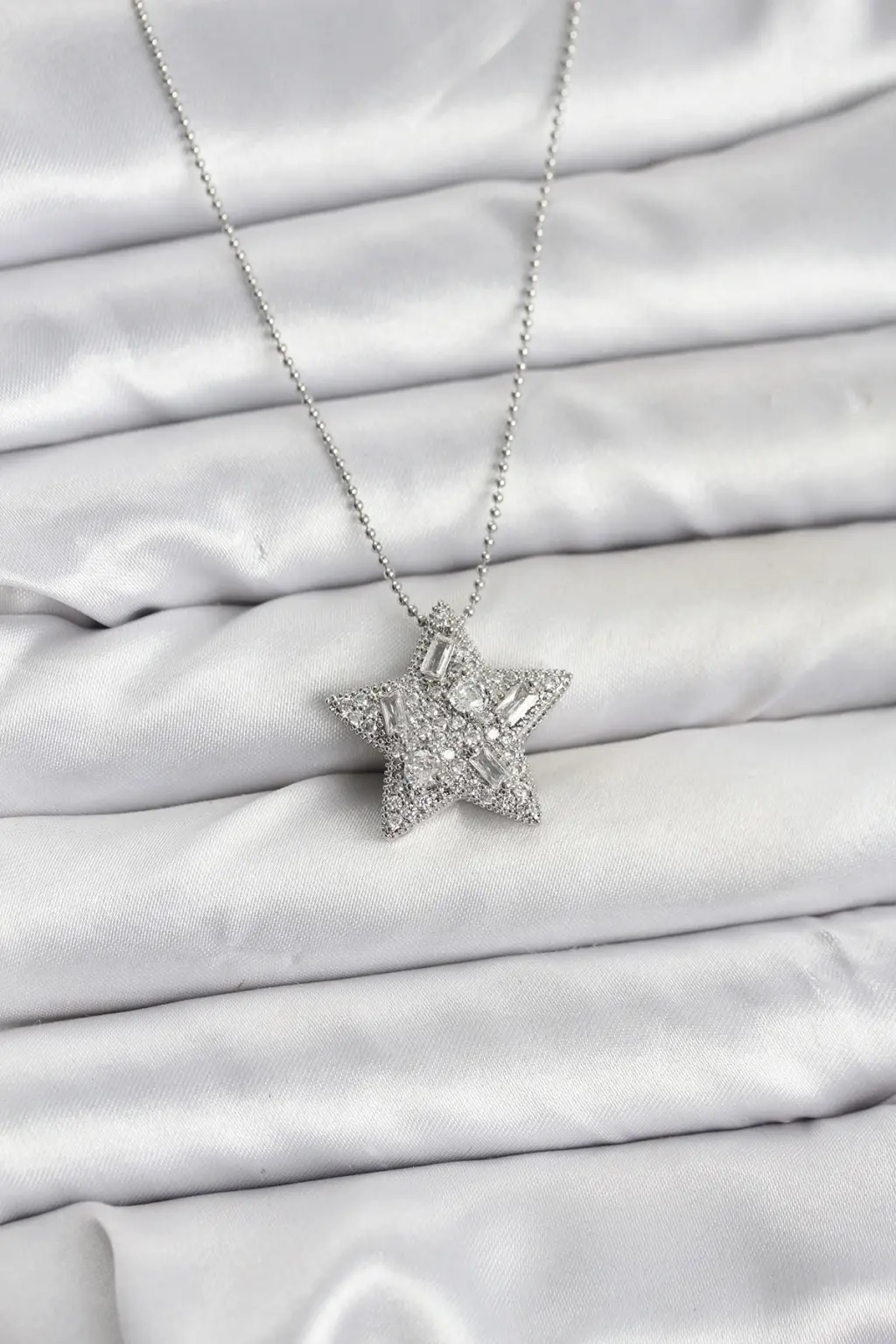 316L Çelik Zincir Gümüş Renk Zincirli Gümüş Yıldız Model Kadın Kolye Eşşiz tasarımıyla sizlerle. En uygun fiyat garantili kararmaz modelimiz karşınızda.
