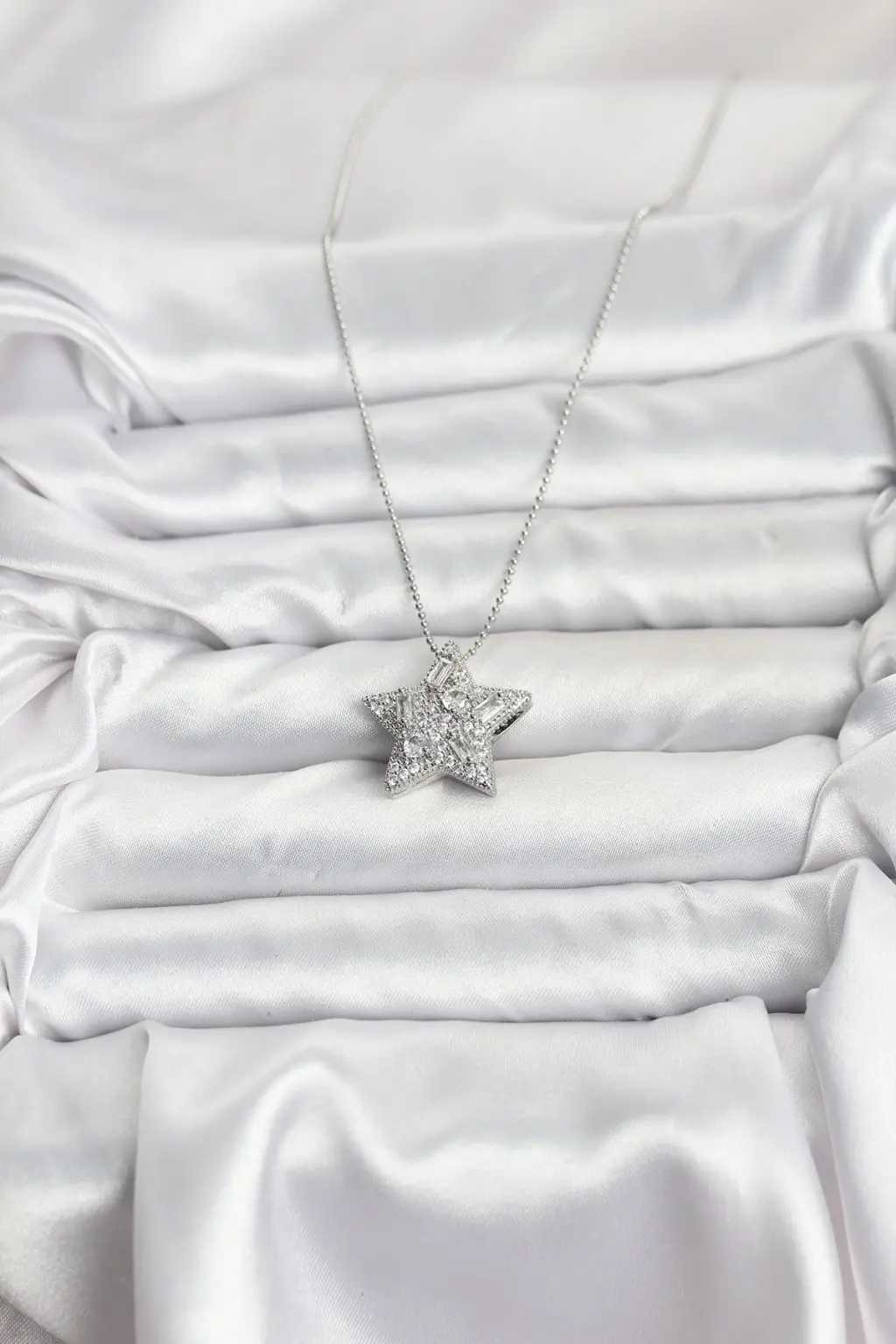316L Çelik Zincir Gümüş Renk Zincirli Gümüş Yıldız Model Kadın Kolye özel tasarım