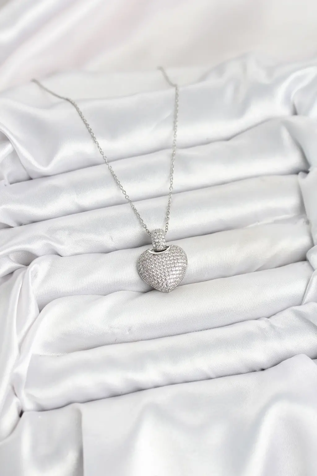 316L Çelik Zincir Gümüş Renk Zirkon Taşlı Kalpli Kadın Kolye Eşşiz tasarımıyla sizlerle. En uygun fiyat garantili kararmaz modelimiz karşınızda.
