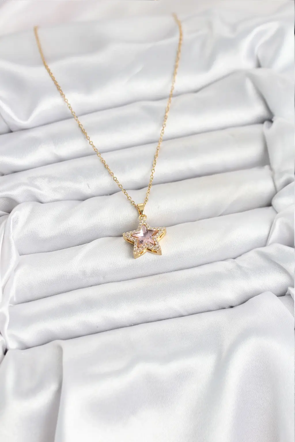 Gleam marka 316L çelik zincir pembe taşlı yıldız model kadın kolye, cesur ve şık kadınların tercihi.