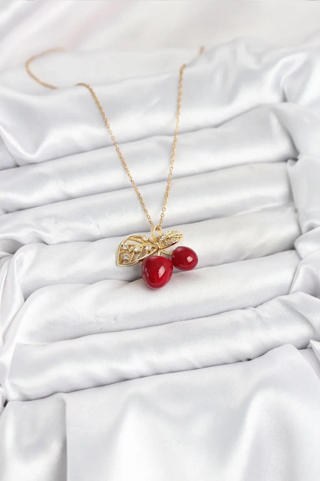 316L Çelik Zincir Yapraklı Kiraz Model Gold Renk Kadın Kolye özel tasarım