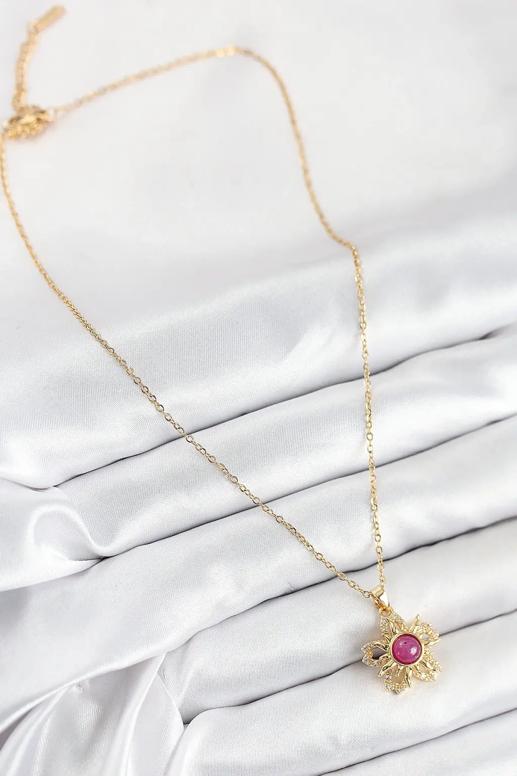 Hem güneş hem de zirkon taşı detaylarıyla parlayan, Gleam marka döner güneş modeli kadın kolye ile tarzınıza şıklık katın!