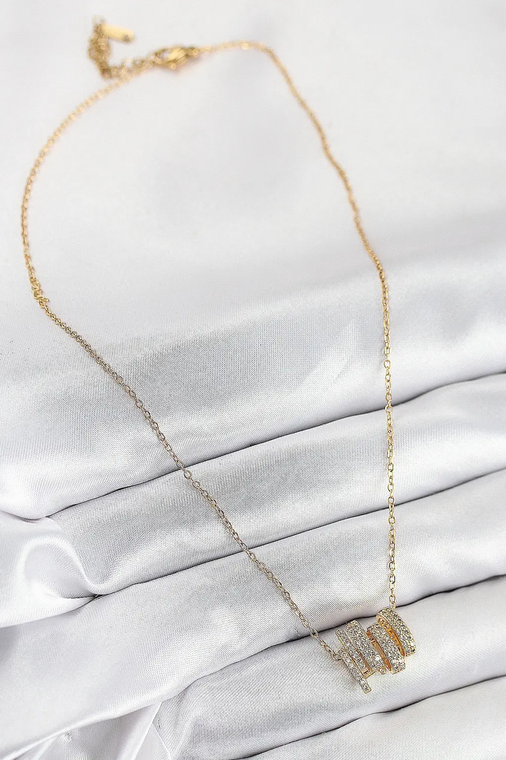 316L Çelik Zirkon Taşlı Sarmal Model Gold Renk Kadın Kolye Eşşiz tasarımıyla sizlerle. En uygun fiyat garantili kararmaz modelimiz karşınızda.