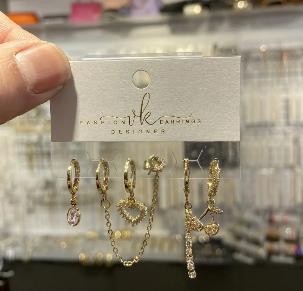 Gold renkli ve şık tasarımı ile dikkat çeken 6’lı Çelik Küpe Seti, farklı kombinasyonlar yapmanıza olanak tanır. Bu sette yer alan kiraz sallantılı, kalp ve su yolu motifli küpeler, günlük veya özel günlerde kullanabileceğiniz şık seçenekler sunar.