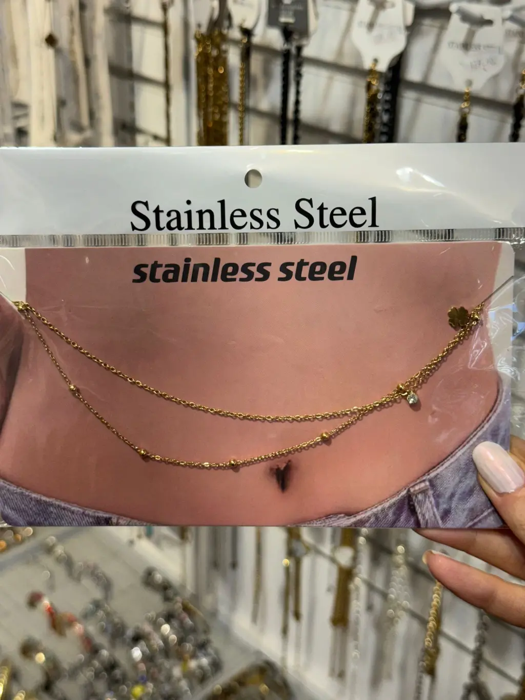 ✨ Altın Çelik Zarif Boncuklu Bel Zinciri
