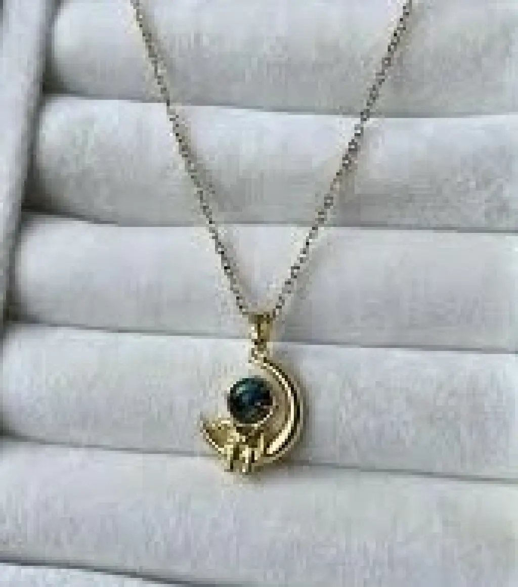 Mavi galaksi detaylı başlık bölümü, tasarıma benzersiz bir derinlik ve renk geçişi kazandırır. Altın tonun sıcak ışıltısı ile birleşen bu kozmik detay, kolyeye hem modern hem duygusal bir hava katar. Günlük kombinlerde fark yaratmak veya özel günlerde anlam dolu bir parça taşımak isteyenler için mükemmel bir tercihtir.